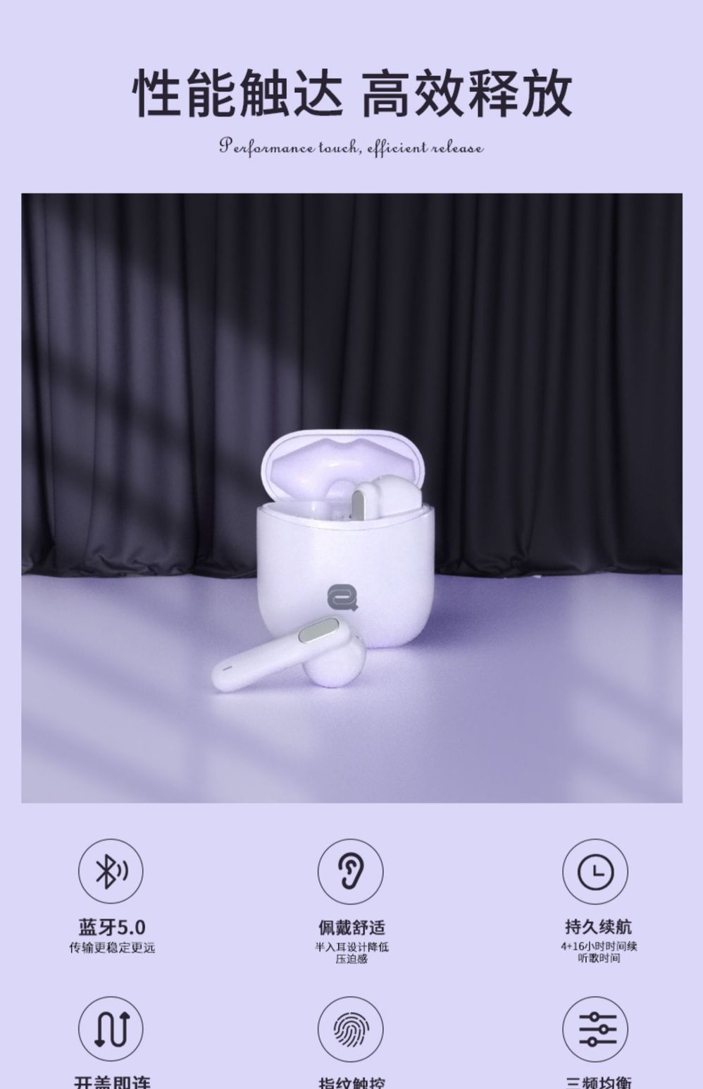 马卡龙色系的蓝牙耳机,给生活加点浪漫,自动配对,简单又省心,指纹触摸,各种快捷操作在耳机操作完成,蓝牙5.0性能强大内芯,给你带来余音绕梁的听觉盛宴!【退货运费险】