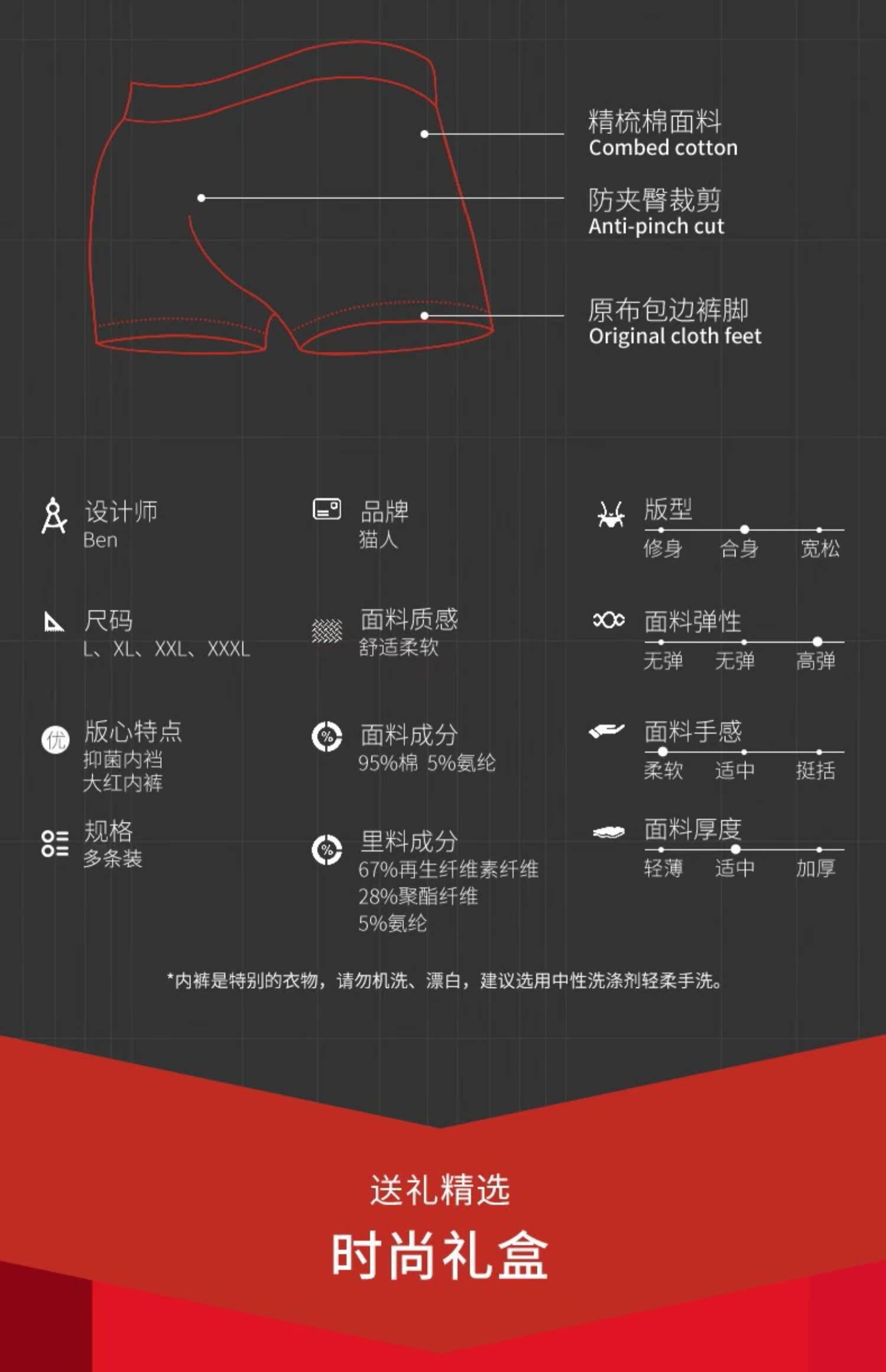 超值2条装!简约高弹腰带,石墨烯抑菌内裆,不卷边裤脚,精梳棉面料,原布包边裤脚!送家人,男友,结婚佳品~