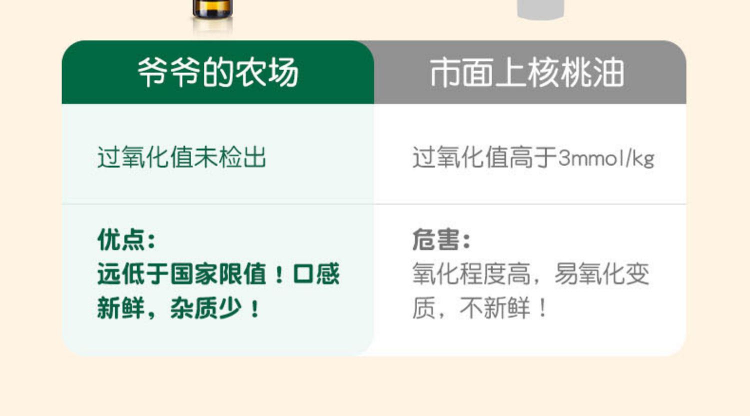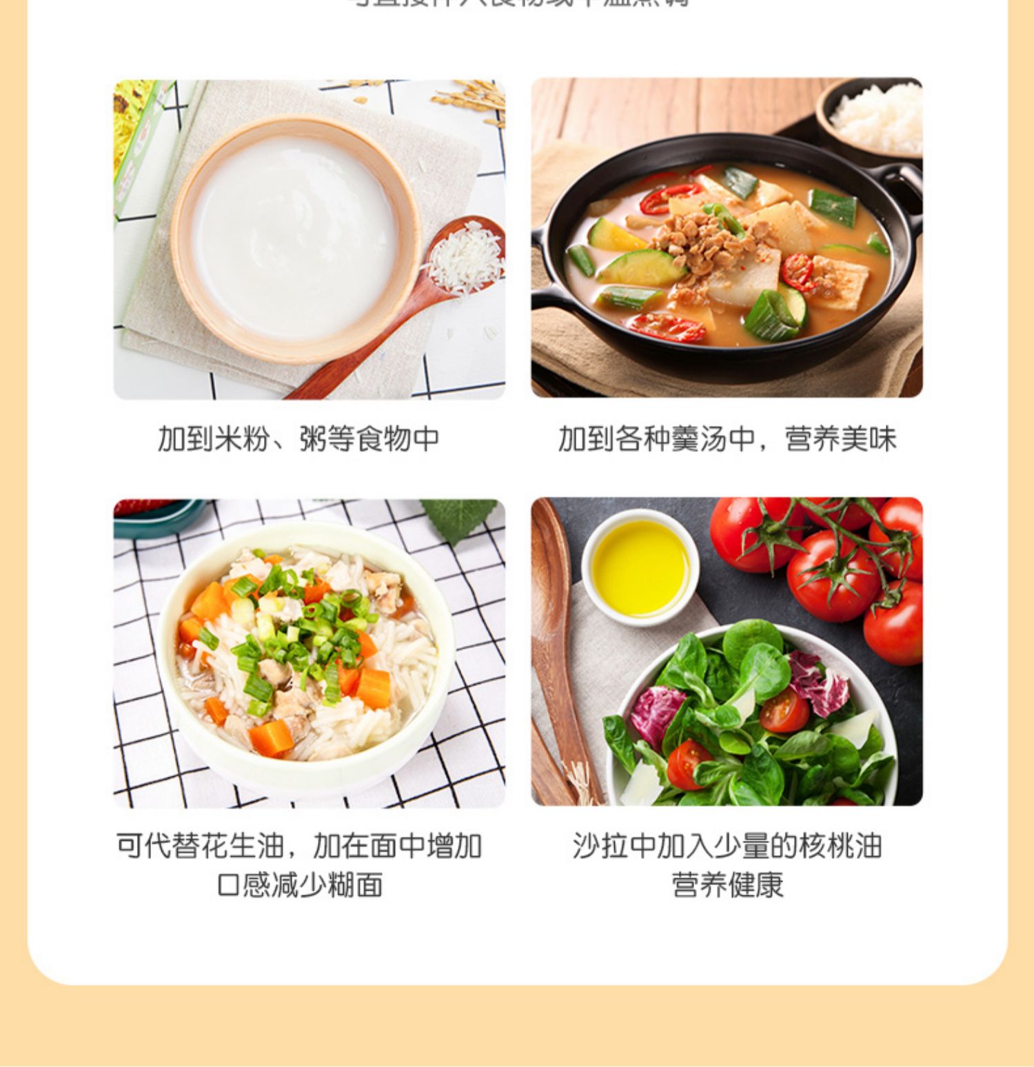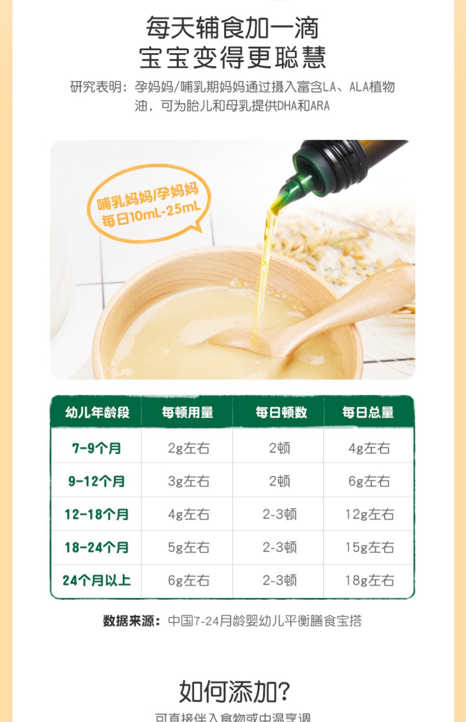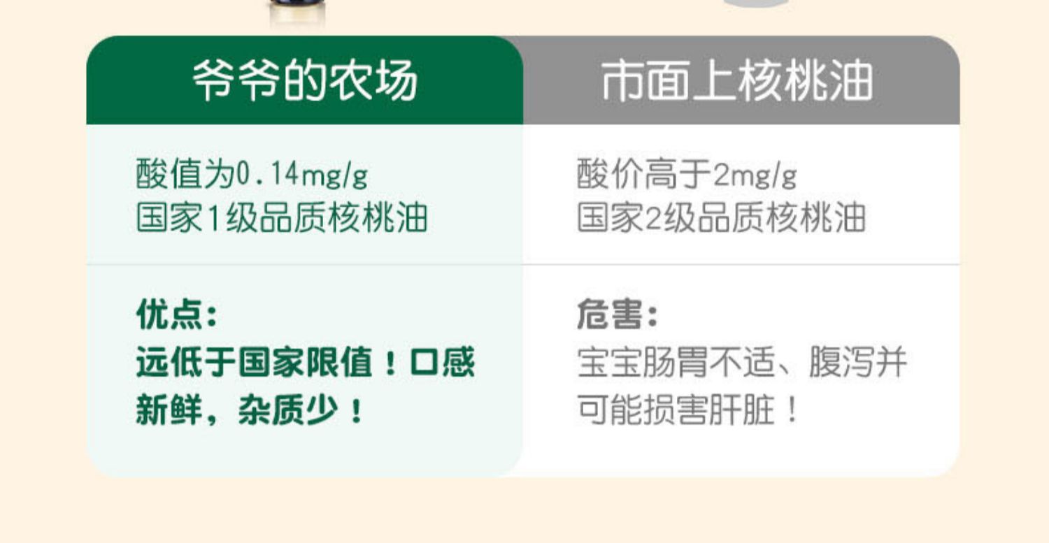 法国原装进口,纯核桃低温冷榨,富含多不饱和脂肪酸,专属宝宝的一瓶好油。易吸收、不上火,宝宝好吸收。辅食加一滴,美味吃饭香。