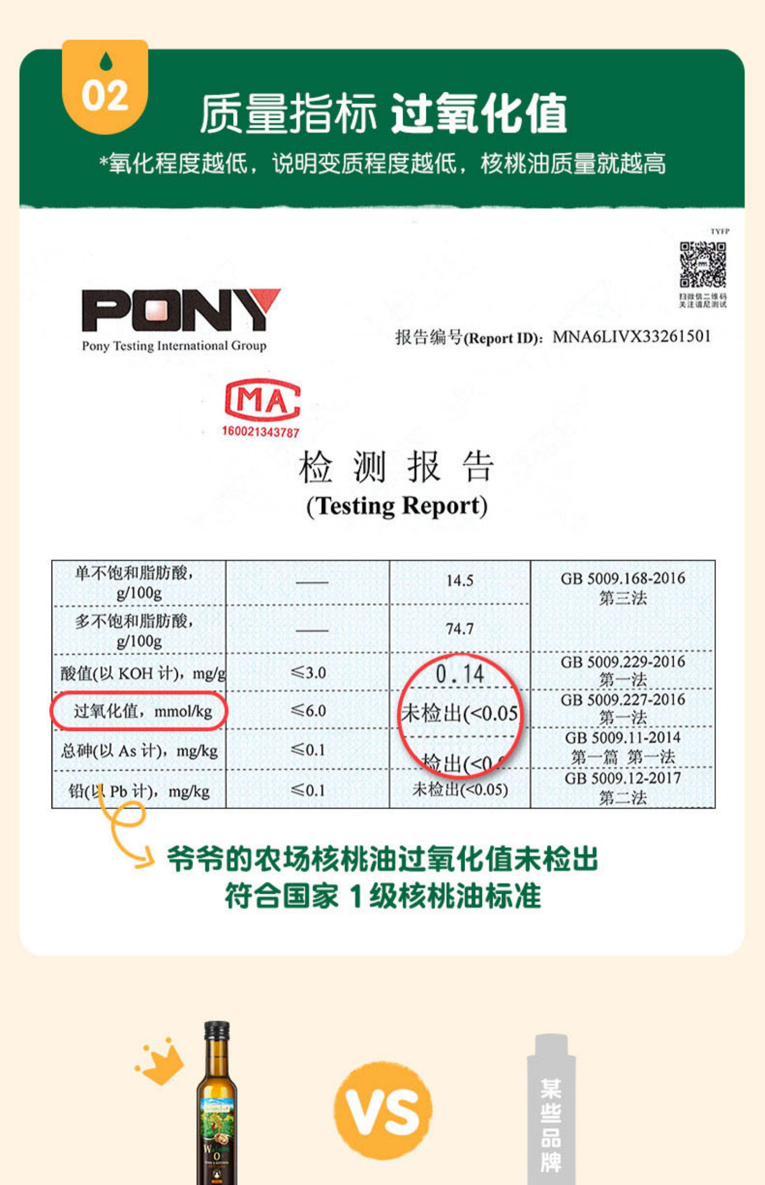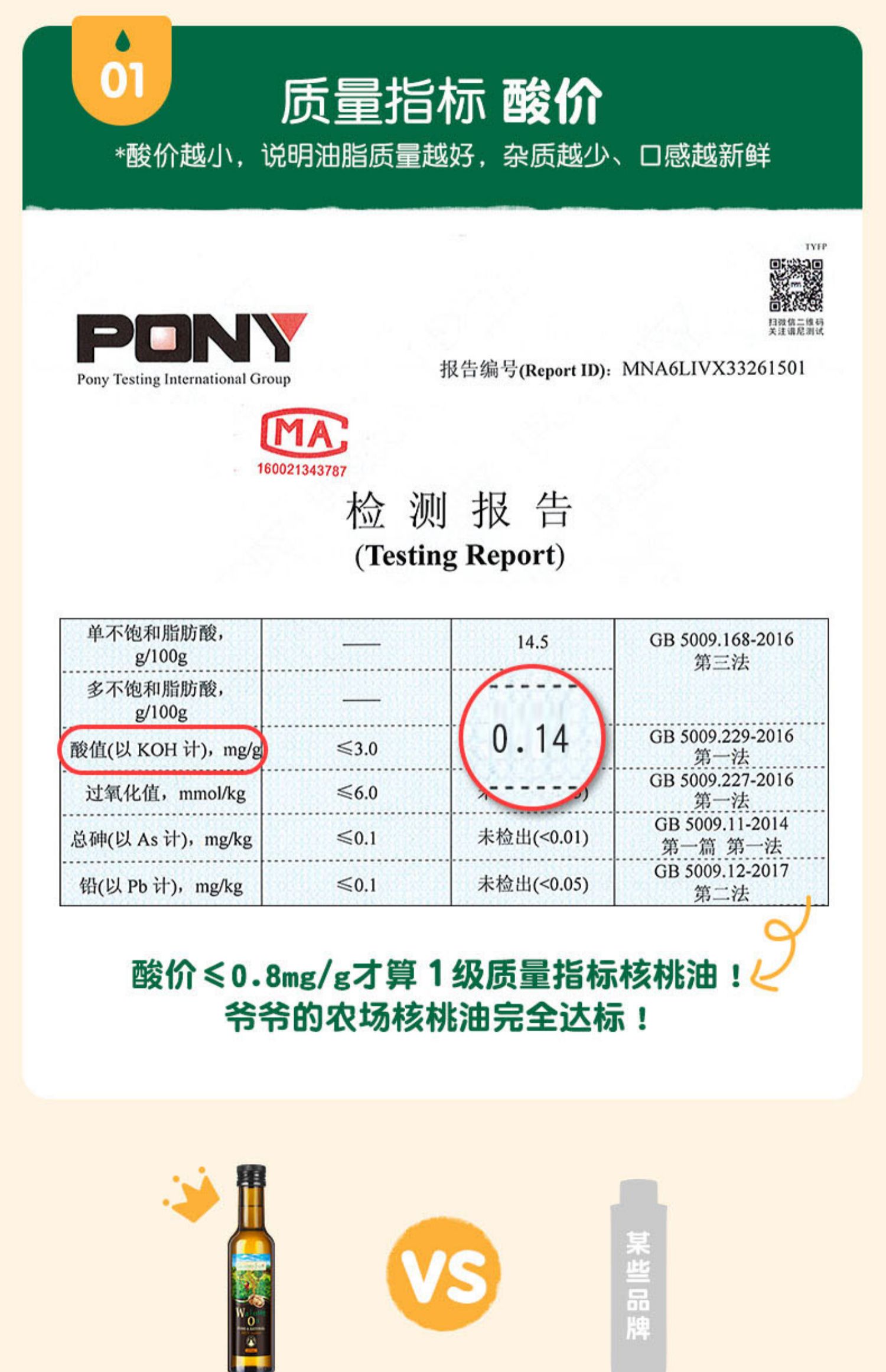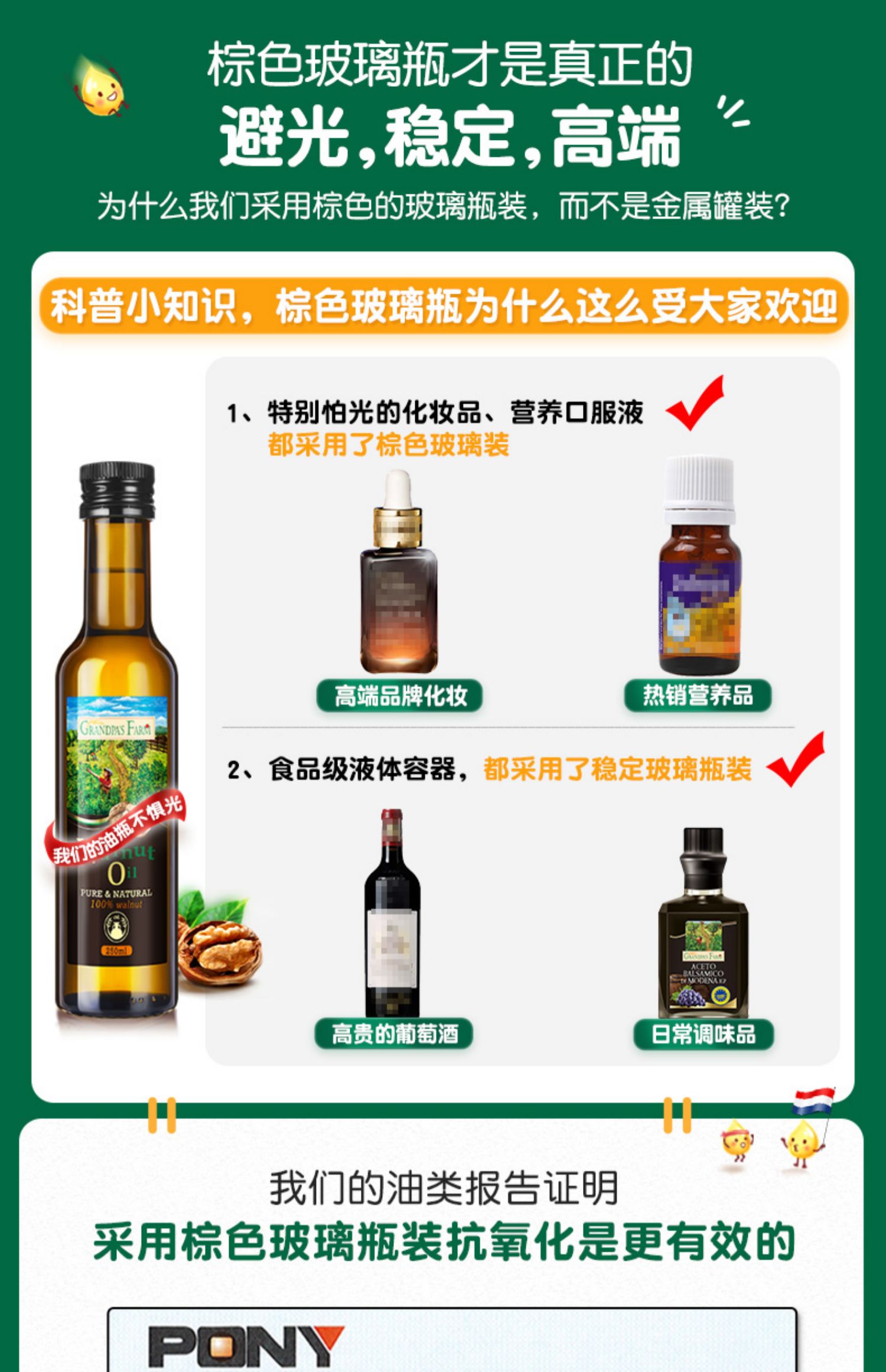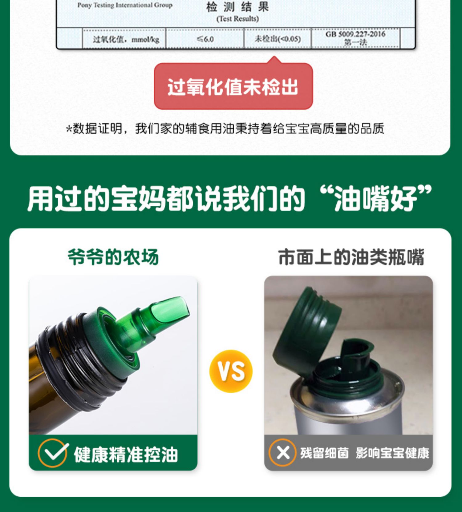 法国原装进口,纯核桃低温冷榨,富含多不饱和脂肪酸,专属宝宝的一瓶好油。易吸收、不上火,宝宝好吸收。辅食加一滴,美味吃饭香。