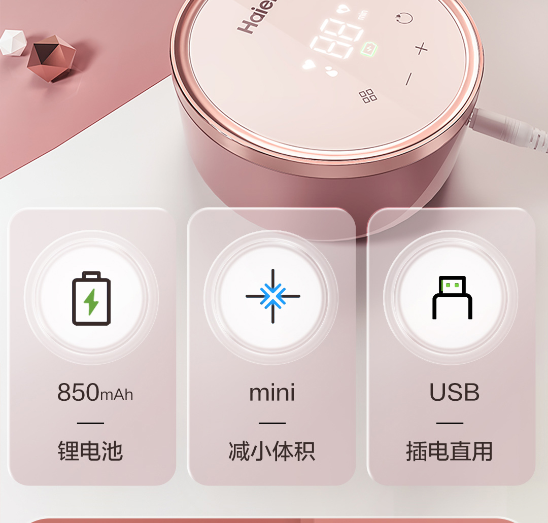 前50名抢半价【别人家防溢乳垫100要2,3十,我们直接赠送】海尔黑科技,高频仿生,无痛吸乳;一体式吸奶器,小巧便携,120万宝妈真实体验~奶量少的妈妈能用,乳头内陷的妈妈能用!【赠运费险】