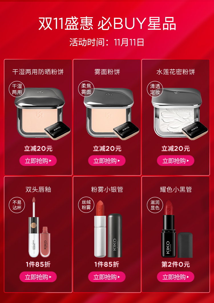 【88vip下单立享95折,赠小泡芙粉扑】自带防晒值!意大利进口,kiko干湿两用粉饼!补妆=补防晒!干湿两用,清透服帖妆感,无惧油光!