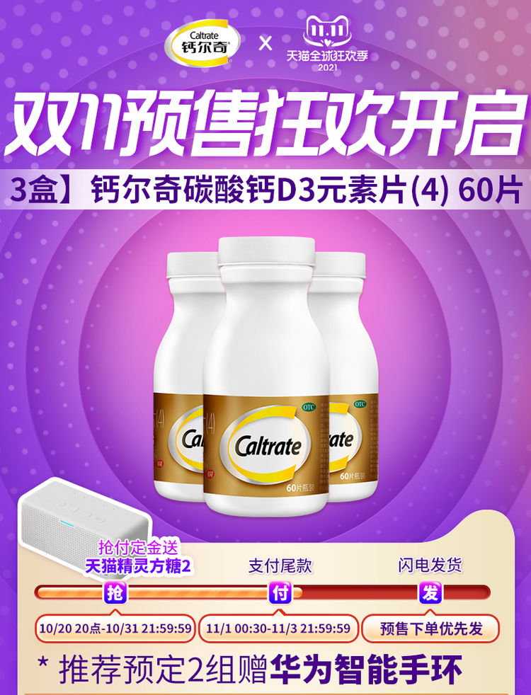 【金钙尔奇】单价赠眼罩颈枕,中老年人科学补钙,国药OTC标准,医院推荐同款,内含镁锌锰铜,四种人体所需矿物质,碳酸钙维D3元素片,强健骨骼促进钙磷吸收阿里健康【赠运费险】