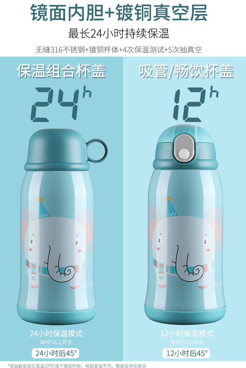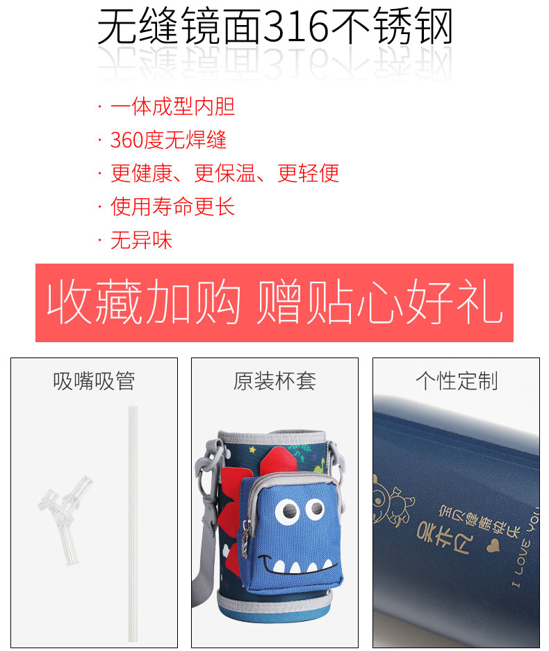 【免费激光刻字】无接缝316不锈钢内胆,长效保温24小时,360°任意放置不漏水,食品级硅胶吸管,不含PBA,一杯四盖,四盖三用,防摔设计,满足1-12岁宝宝,一年四季的饮水需求~【赠运费险】