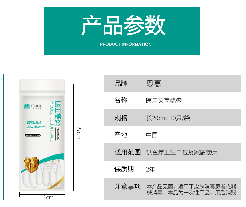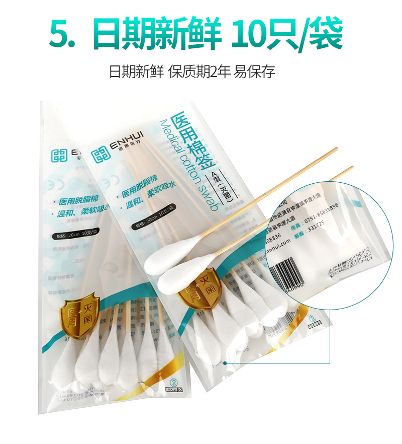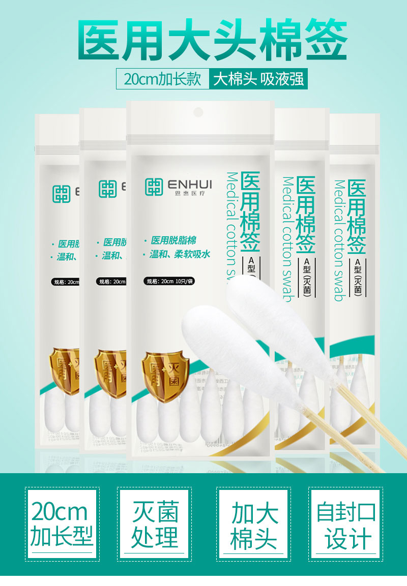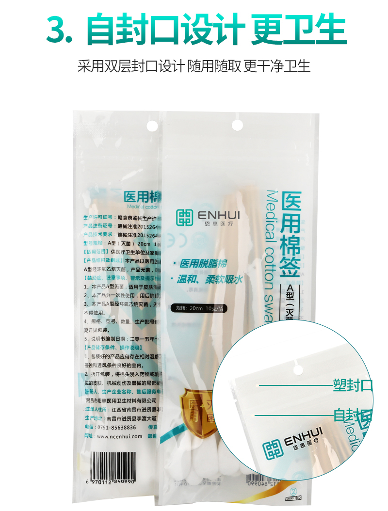 【恩惠医用棉签】医用灭菌棉签3袋,优质棉头,吸液性好,饱满洁白棉头,缠绕紧实不易脱落。吸附力强,柔软亲肤无异味【增运费险】