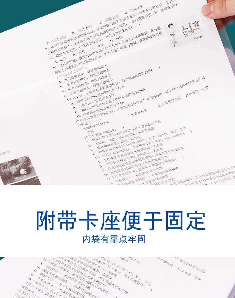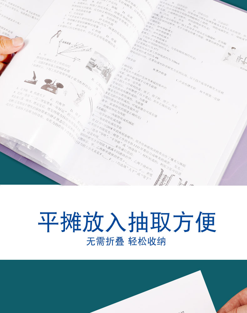 试卷收纳无需折叠,方便快捷,抽取方便,高弹绑带稳固不易散,超大容量,多种款式,双面高透,查阅方便