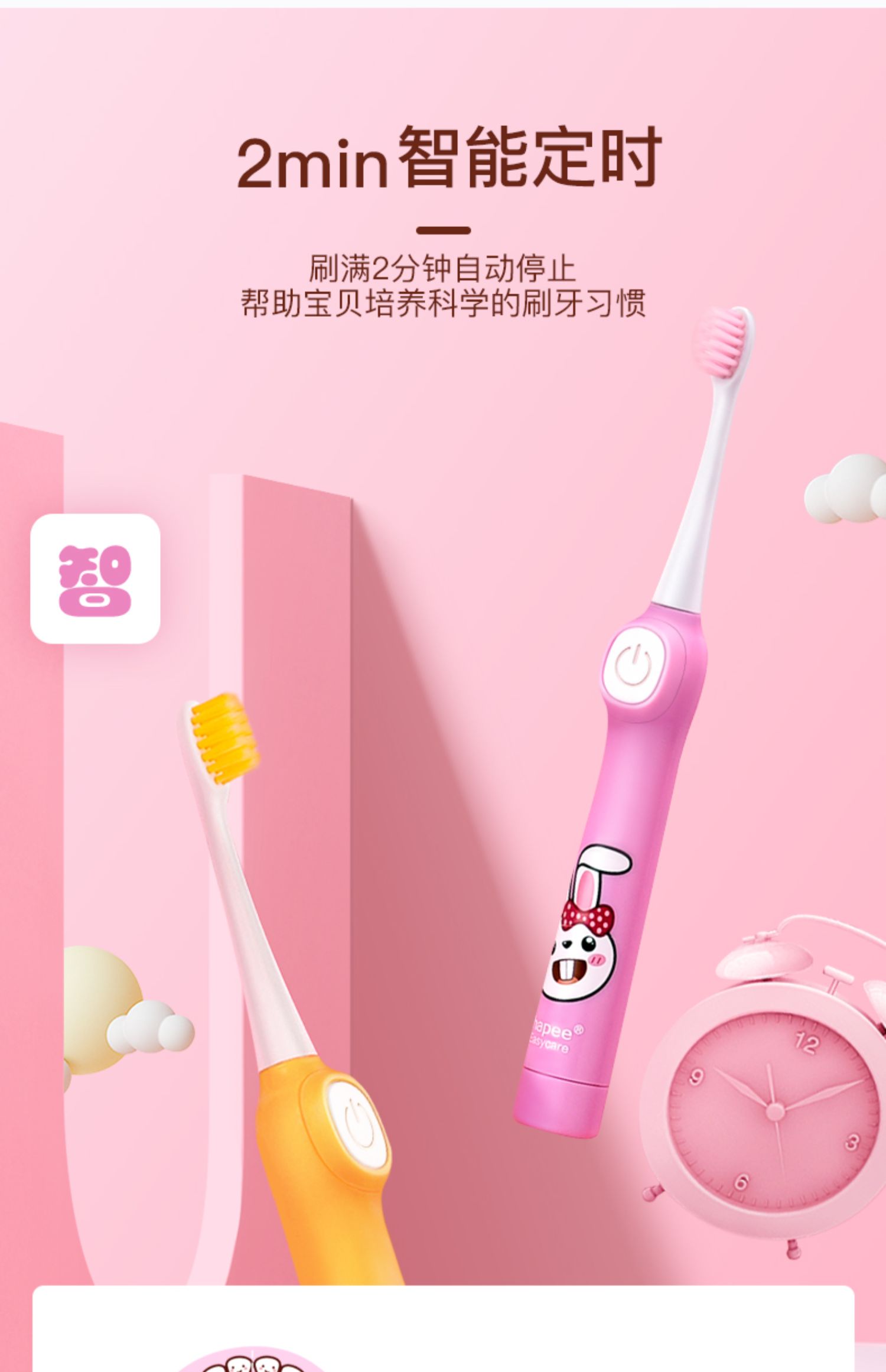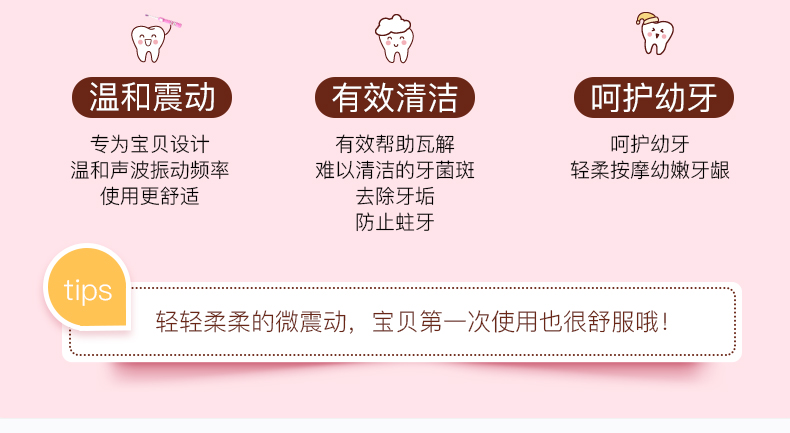 【线下超市119元,守护宝宝稚嫩小牙!】乳牙长坏对恒牙有影响!温和震动有效清洁!刷毛更细更柔,专为儿童设计!智能定时提醒超贴心!整机防水不担心!【可领5张券】【赠运费险】
