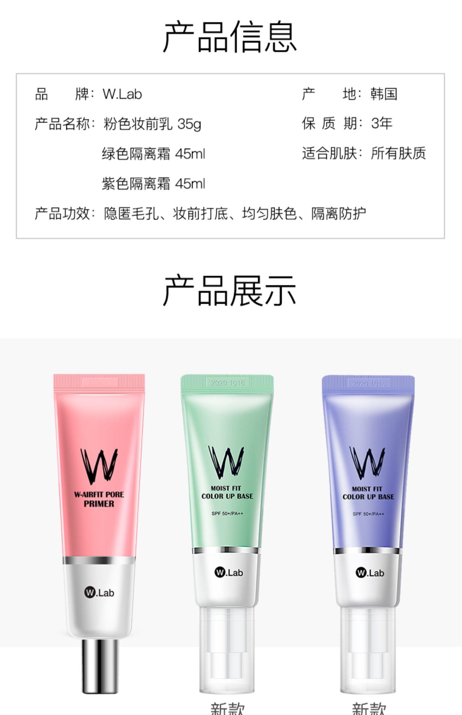 【wlab海外旗舰店】韩国W.Lab遮瑕妆前乳毛孔遮瑕,修饰肤色,滋润肌肤,持久控油,隐形毛孔。