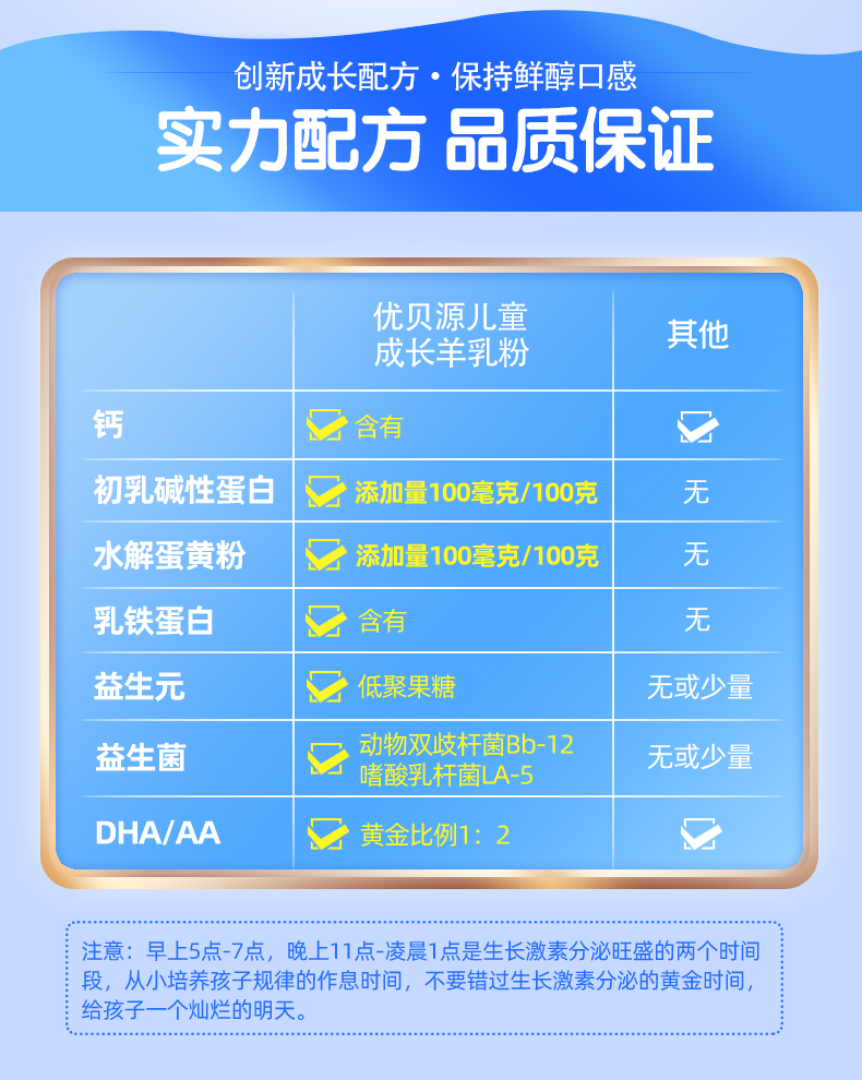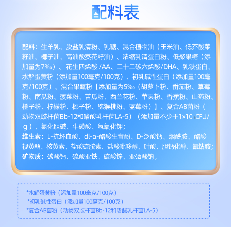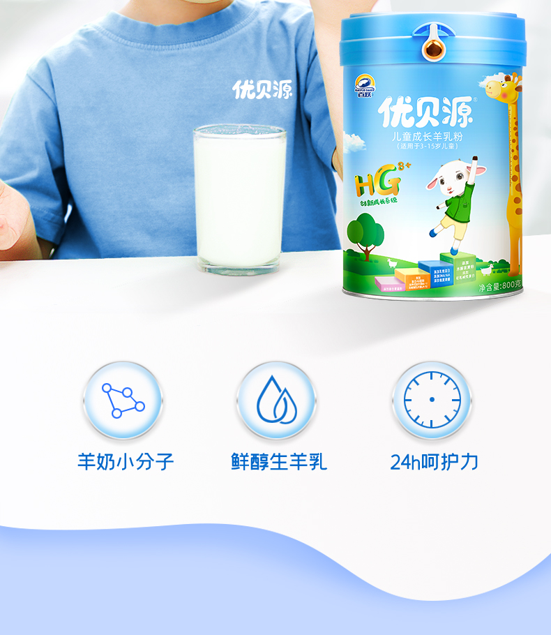 全羊乳配方,特别添加DHA,富含铁锌,和维生素帮助骨骼和牙齿发育,帮助孩子全面成长