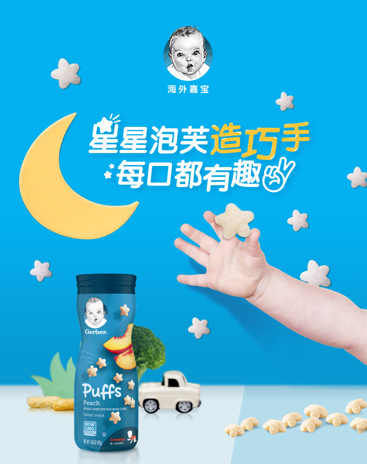 【拍3件7.2折】嘉宝原装进口,星星泡芙超有颜,宝宝超级爱,星星泡芙巨有料,鲜果味道营养多,入口易融防噎食,妈妈的放心选择!