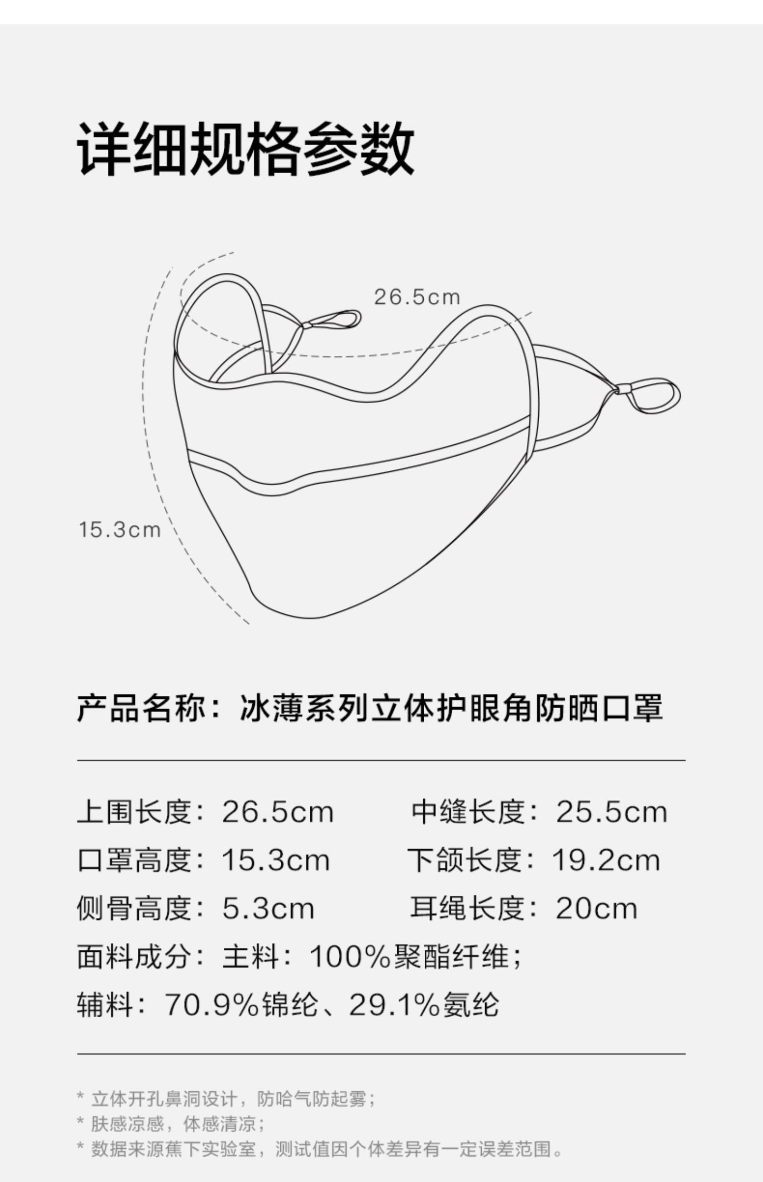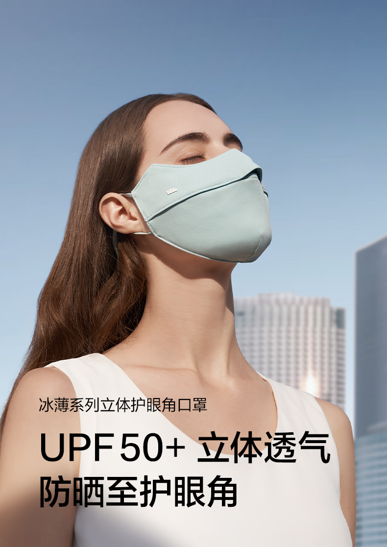 蕉下冰薄系列护眼防晒口罩,UPF50+,科技防晒面料,质地轻薄,透气不闷,护眼角的同时修饰脸颊。多色可选。