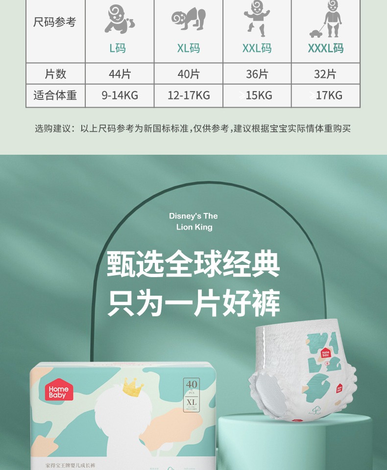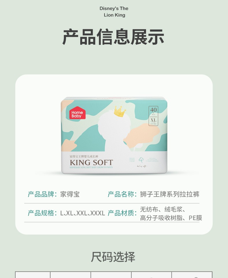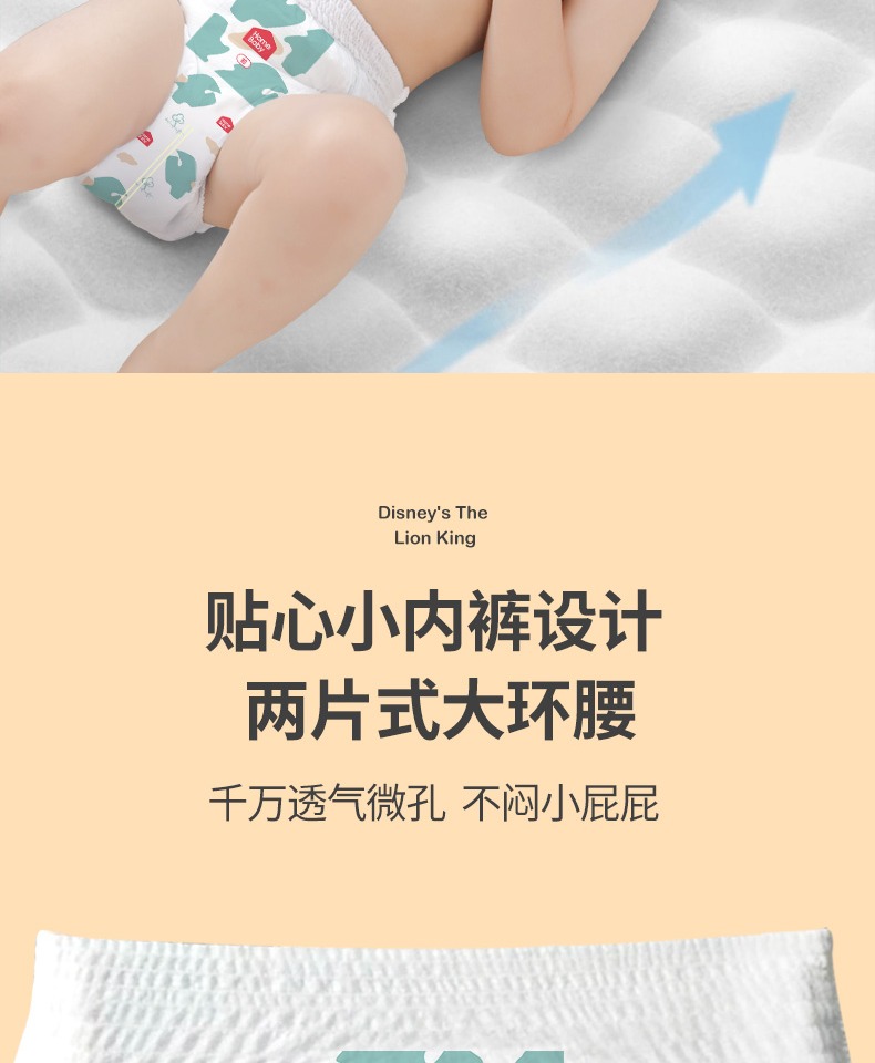 狮子王系列拉拉裤,一片hold住一整夜,千万透气微孔,不闷小屁屁,呵护宝宝娇嫩肌肤,Q萌好物颜值高,宝妈速抢!