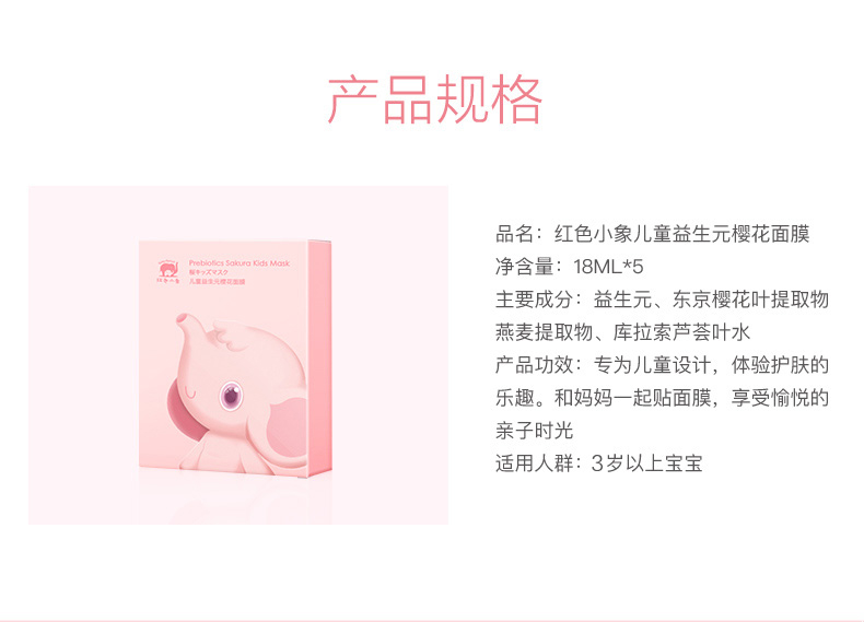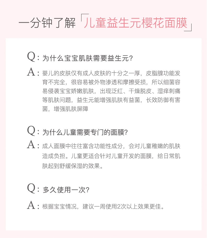 儿童益生元樱花面膜,镇静保湿,密集补水,增强肌肤有益菌,专为儿童设计