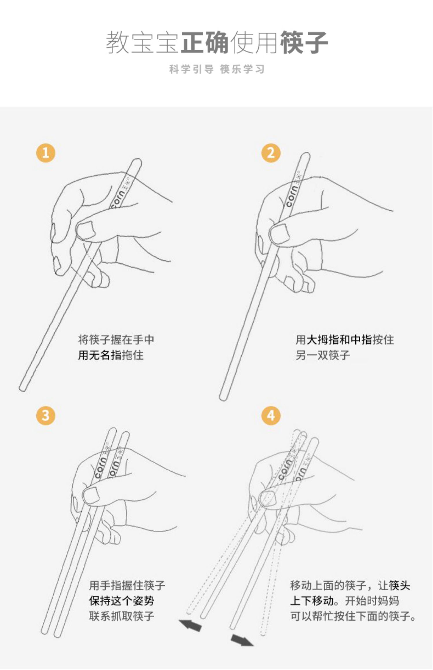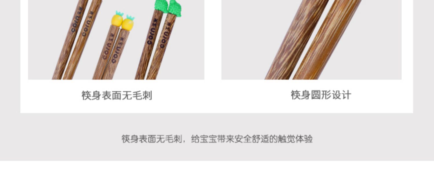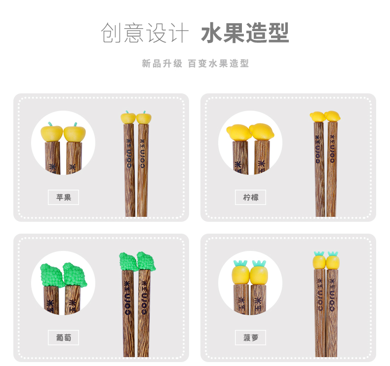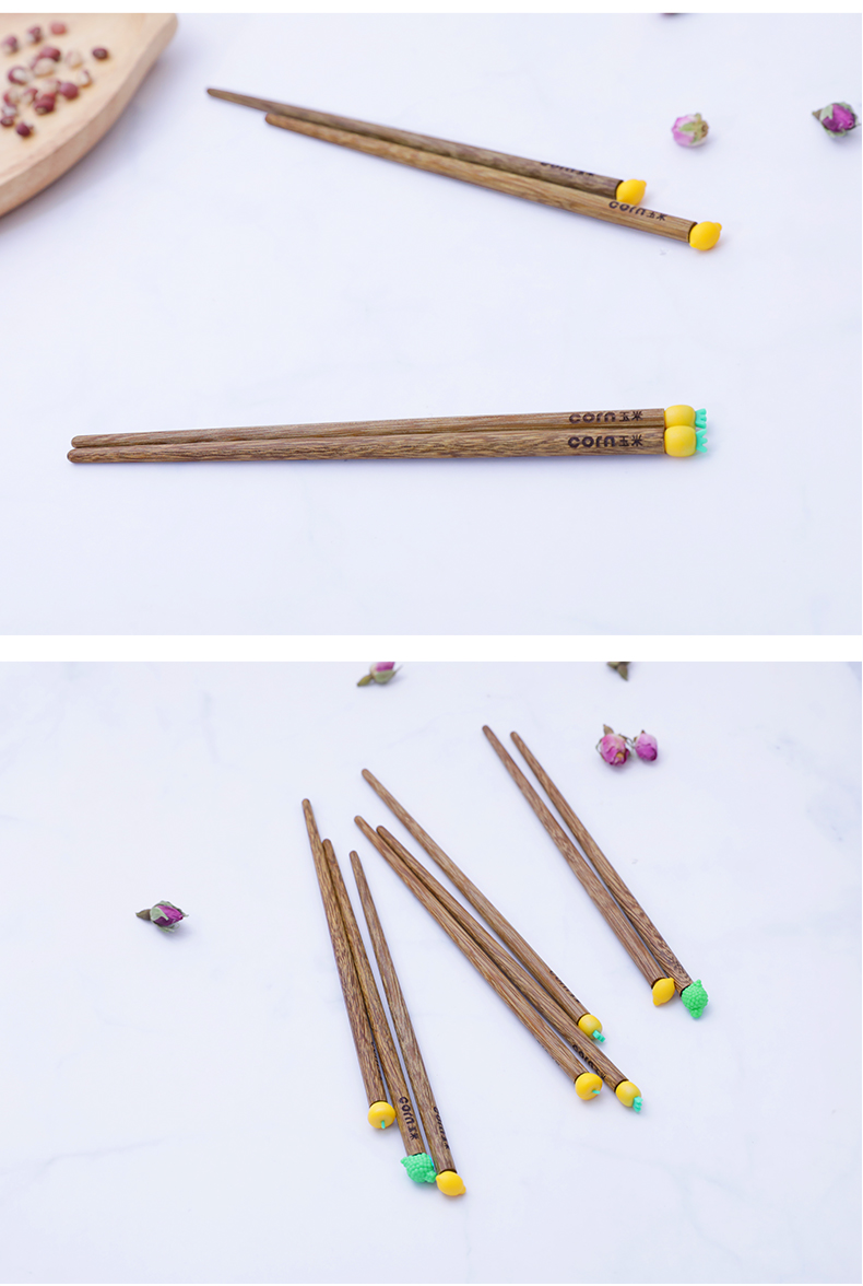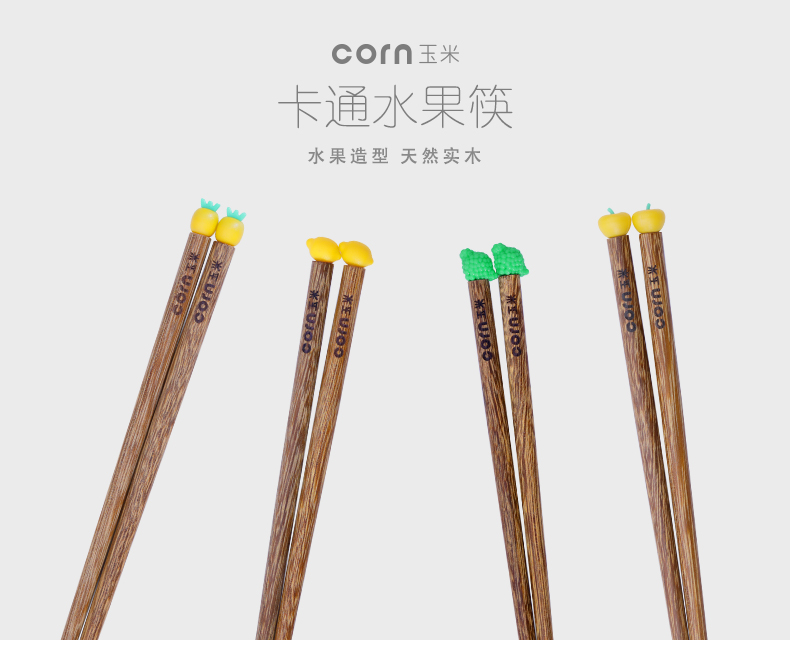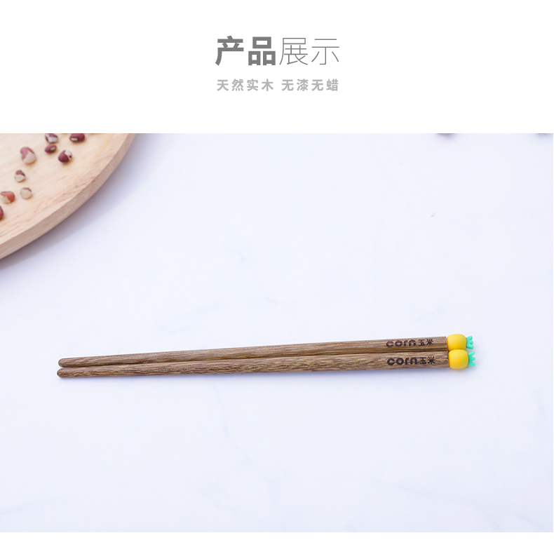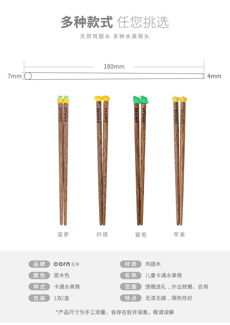 【赠小鸭筷盒】玉米专用儿童6-12岁学习筷,创意卡通水果筷头,天然实木安全卫生,纯手工打造,专为儿童学习吃饭定制
