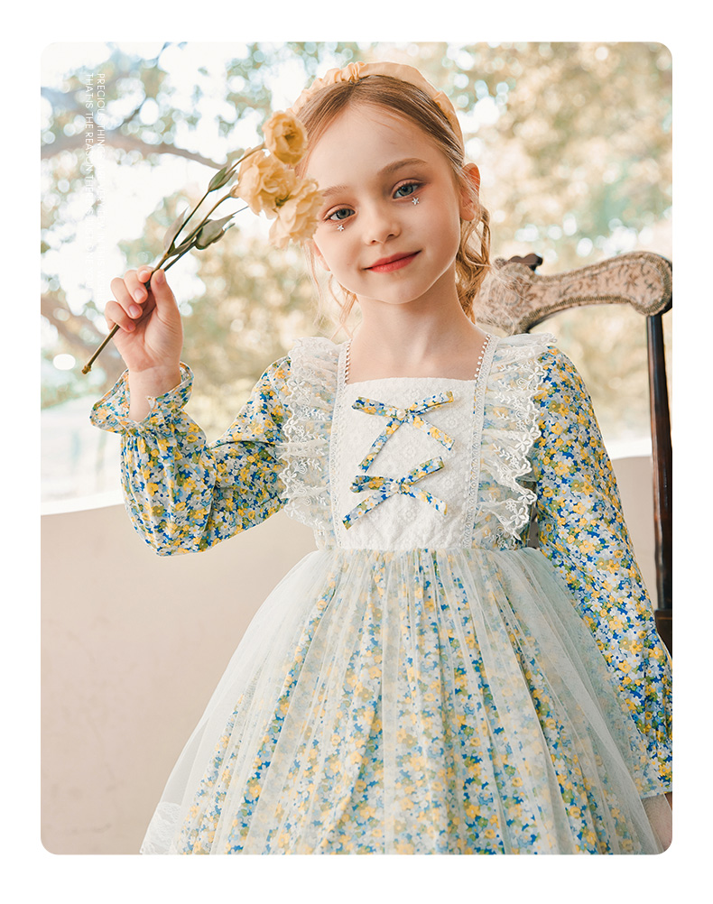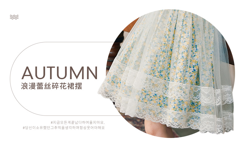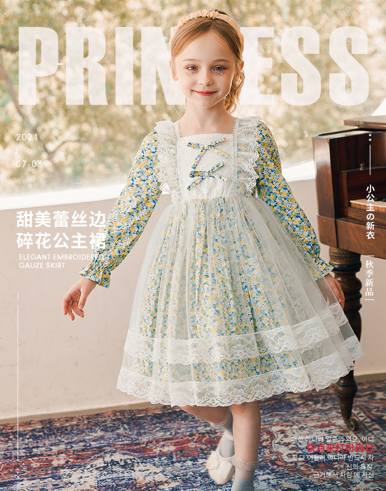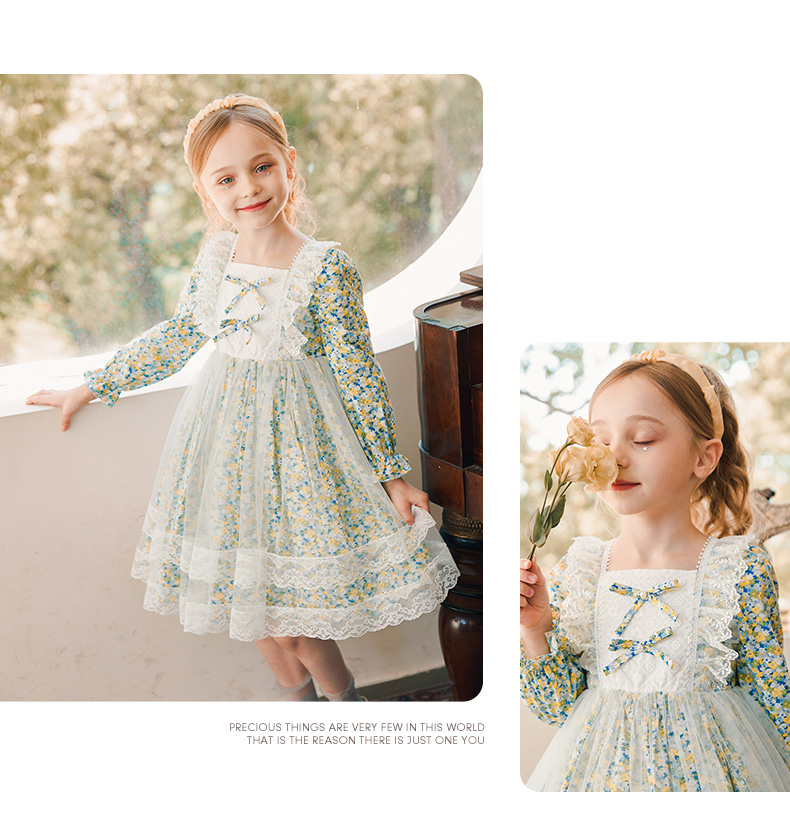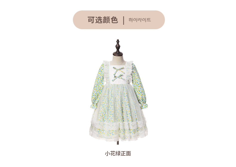 甜美蕾丝花边领口,浪漫碎花网纱裙摆,清新淡雅的碎花绿色调,别致优雅,俏皮可爱又不失公主风,仿佛行走在人间的小仙子~