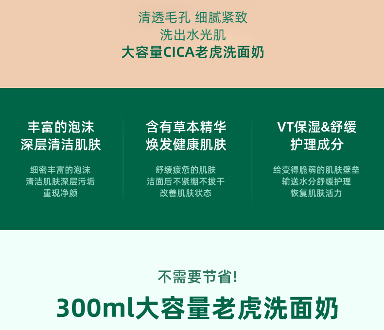 VT老虎洗面奶,快速补水,远离干燥,舒缓保湿,修复肌肤,调节水油平衡~