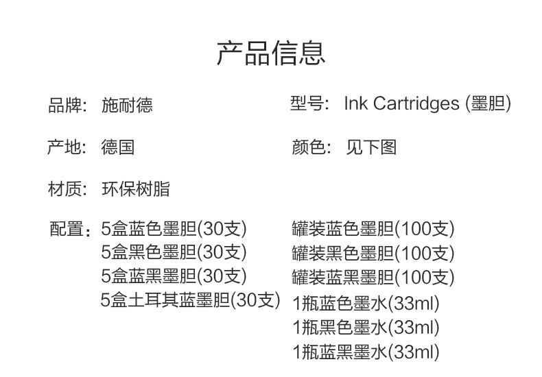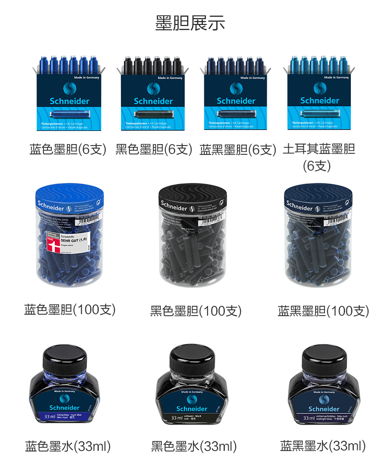 5盒30只!施耐德钢笔替换笔芯墨水墨囊!黑色蓝色颜色可选,书写流畅顺滑不卡纸,矫正握笔姿势,保障长时间书写舒适,适合绝大多数钢笔使用替换,初学者必备~