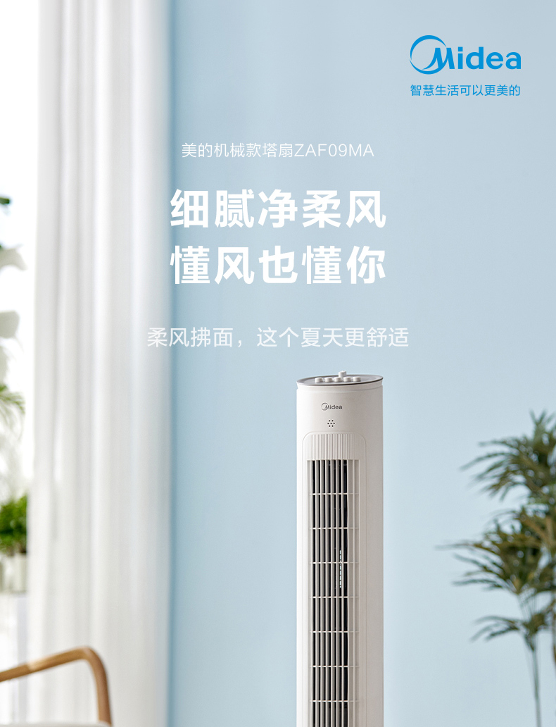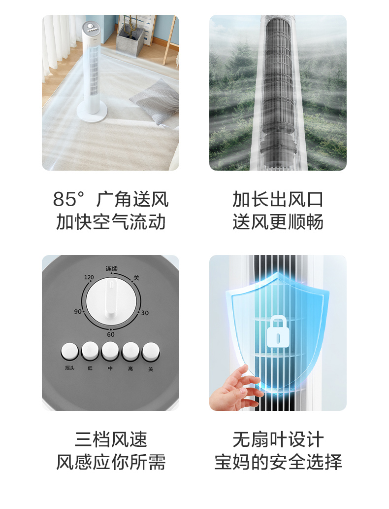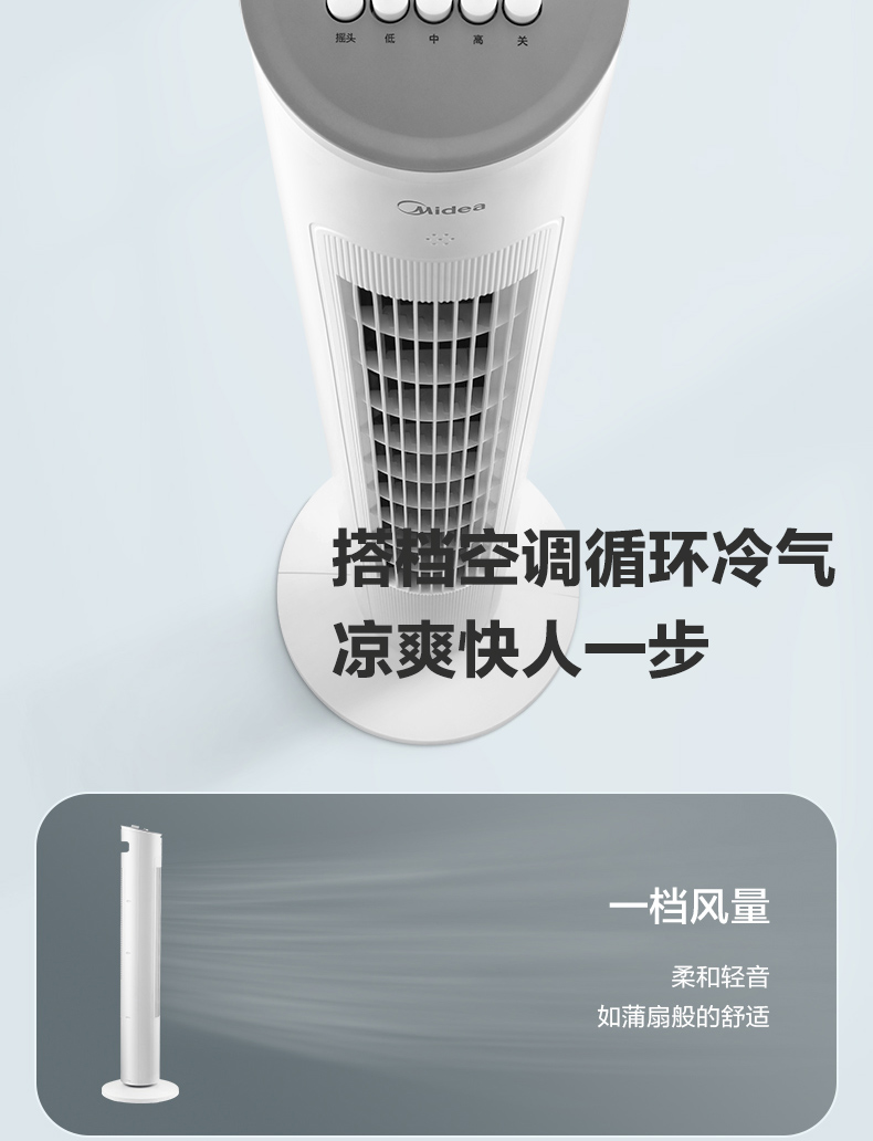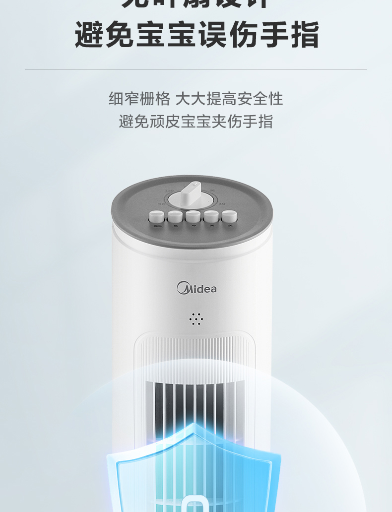 【美的】大功率内旋塔扇立式无叶电风扇,节能高科技,一晚只要0.4度电!无叶柔风,定时三档调节,广角立体送风,低分贝超静音,自清洁,不怕宝宝割手,稳定不倾倒,简洁美观,安全居家好物!【赠运险,全国联保】
