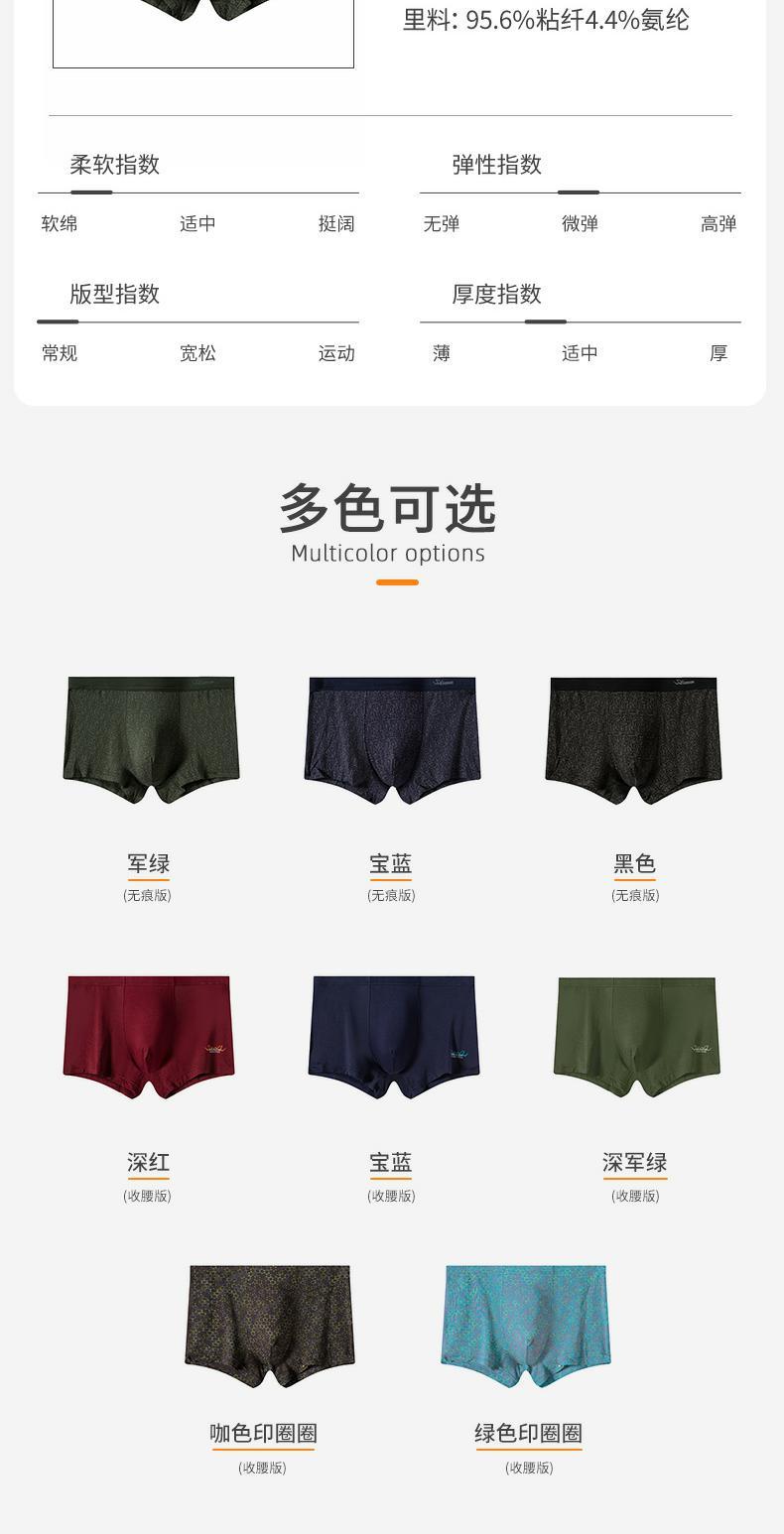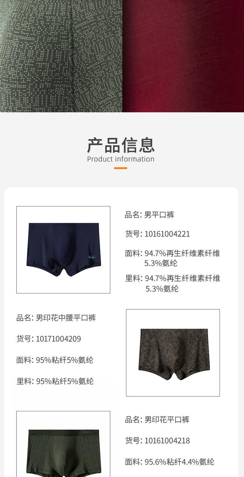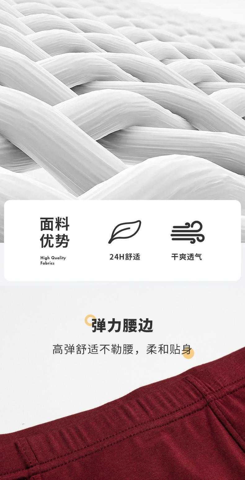 【拍4件】宜而爽男士纯棉透气面料,棉与氨纶的恰当比例,弹性更好,吸湿透气,嫩度高,吸湿性强,高弹力加宽腰带,不易褪色,无感带来舒爽体验。