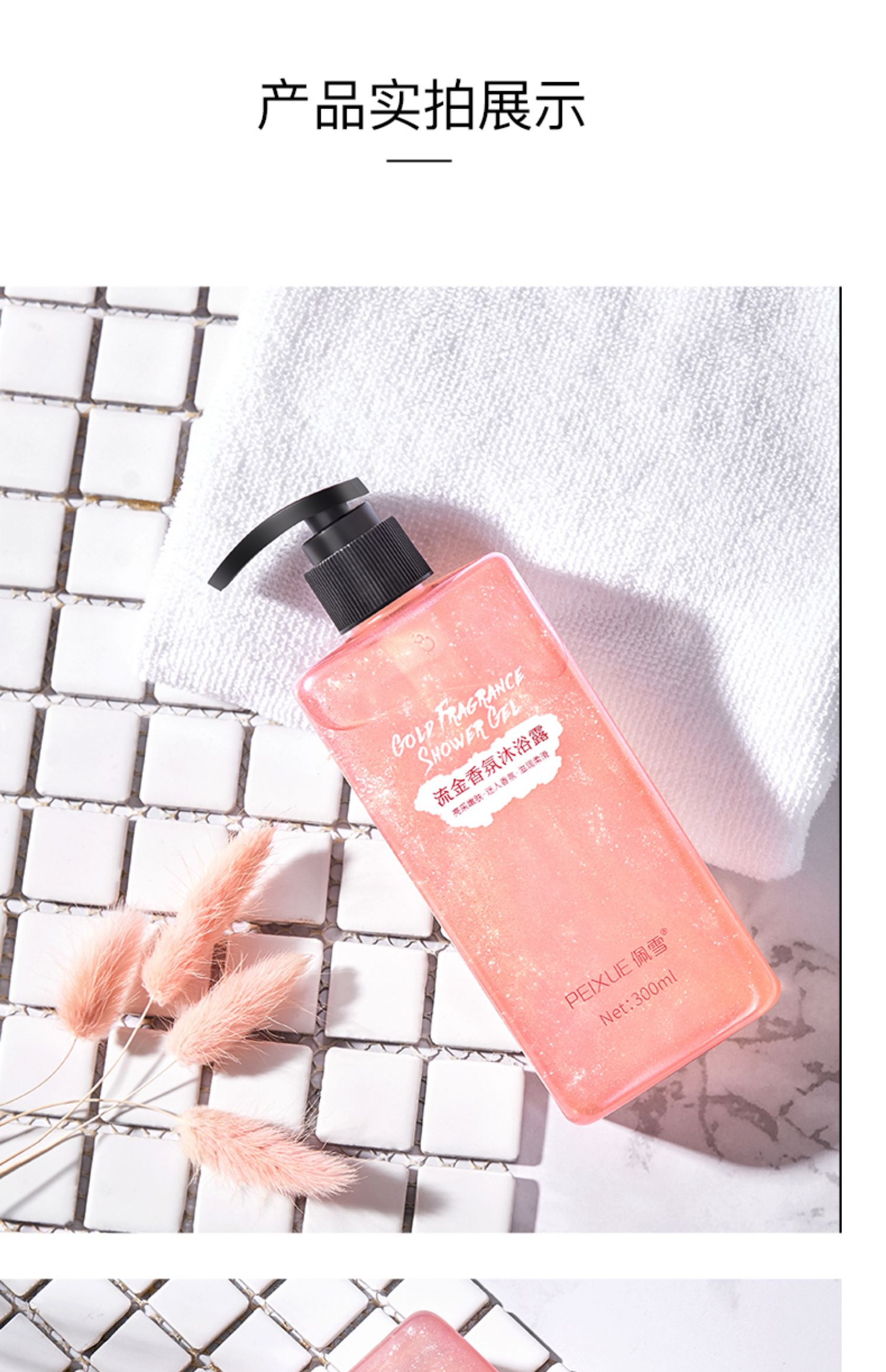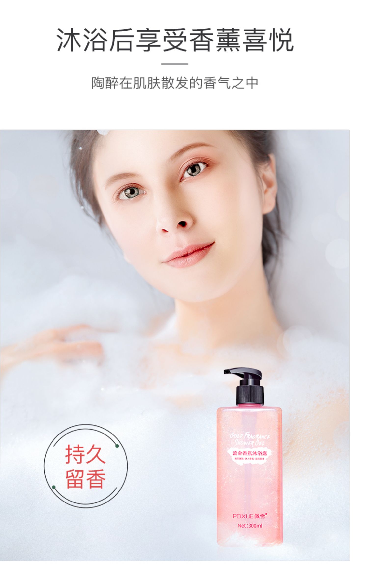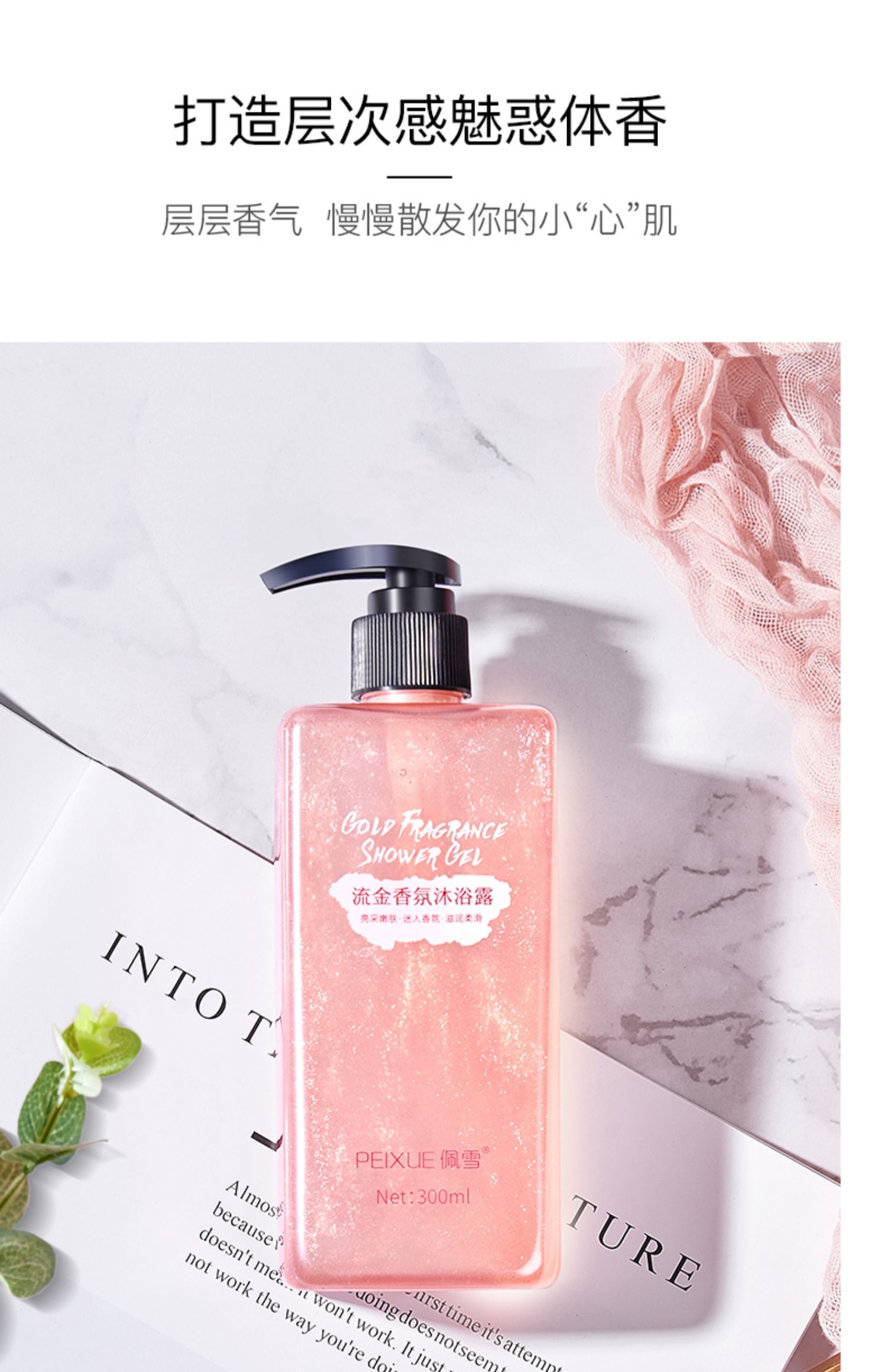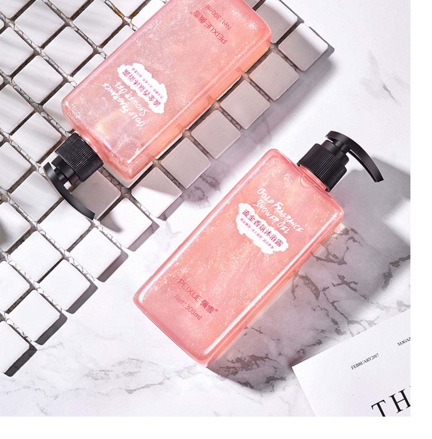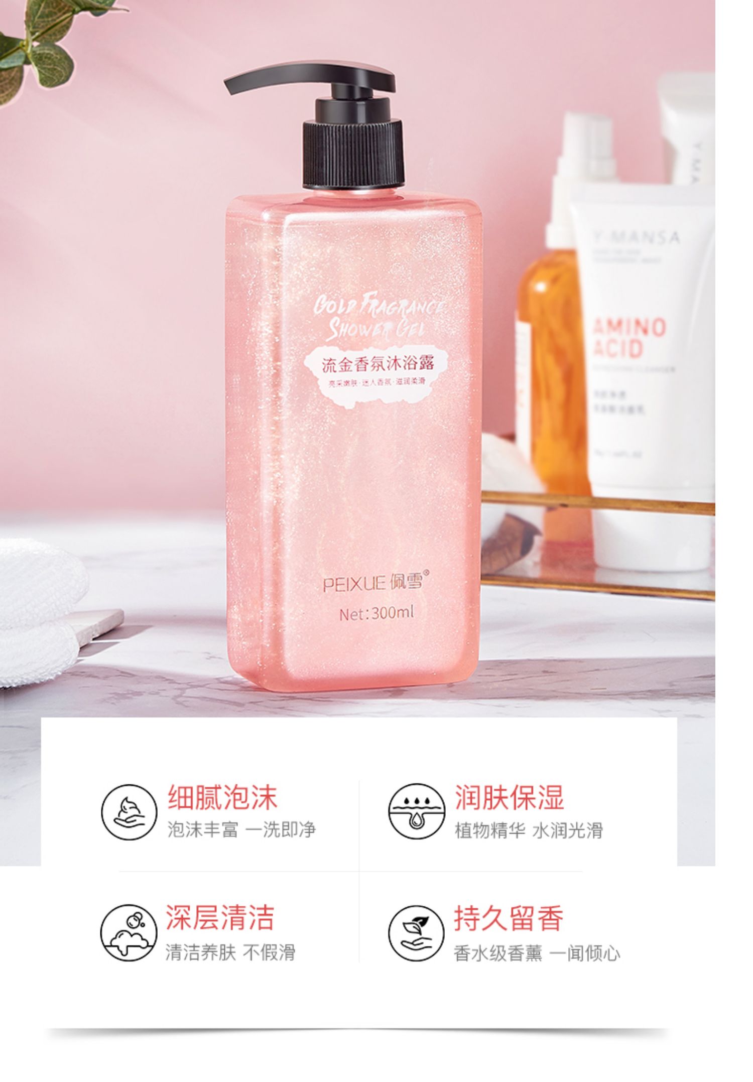 【抖音网红爆款】300ml流沙鎏金氨基酸香水沐浴露,细密泡泡,快速渗透,锁水保湿,持久留香,从包装到瓶身飘动的流沙,超高颜值,一瓶懂你的沐浴露,享受每一天的肌肤SPA