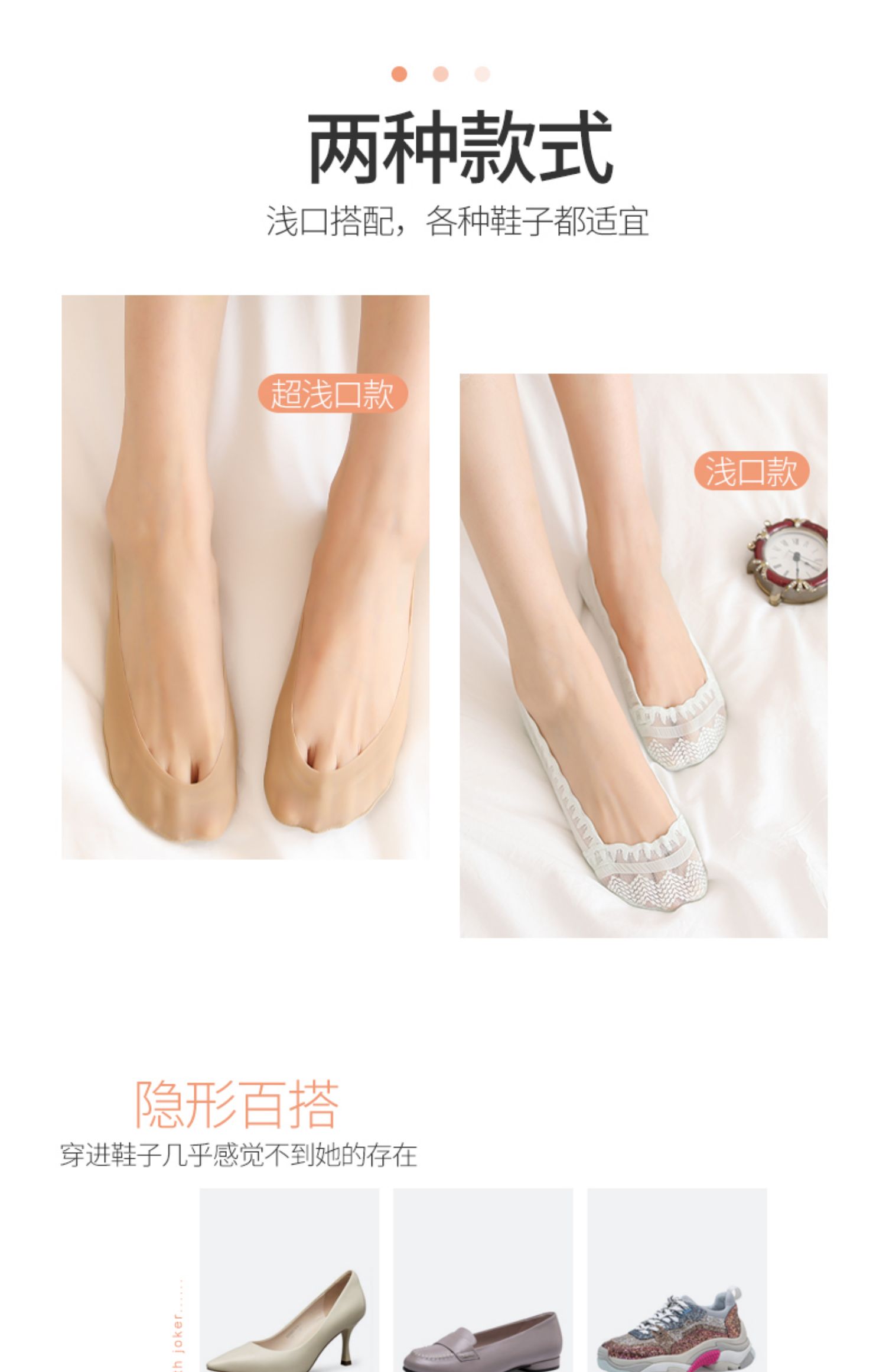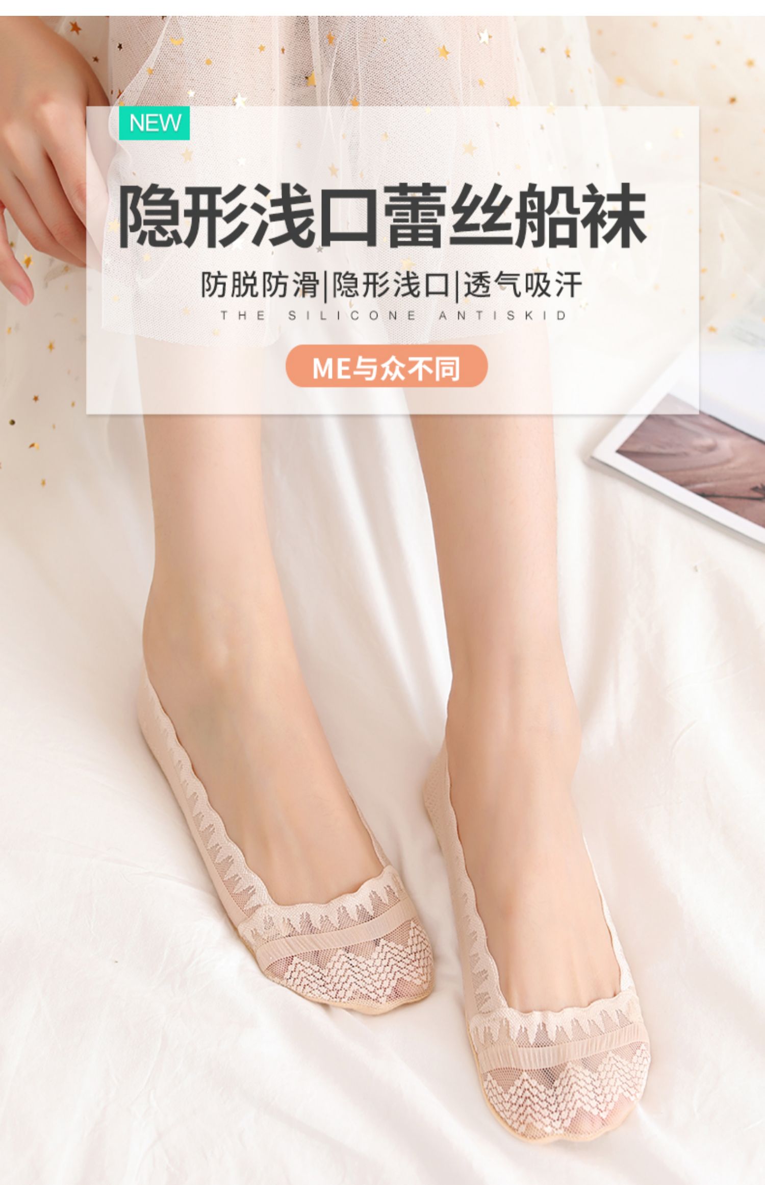 【俞兆林大牌!品质有保障】360度硅胶防滑走路不掉跟,高弹力袜口舒适不易勒脚,浅口隐形单鞋好伴侣,脚底按摩梅花点胶加固防滑,棉质袜底,吸汗透气,穿的舒心!