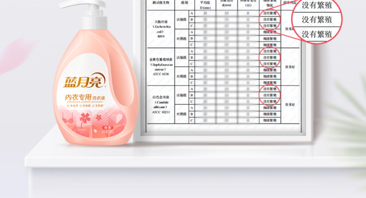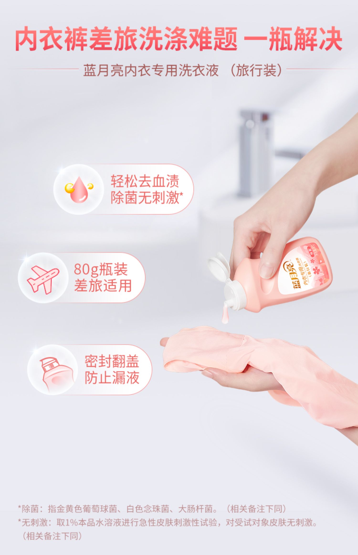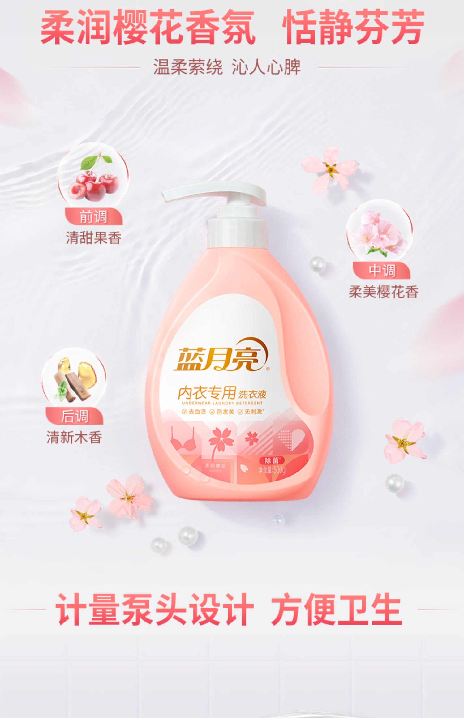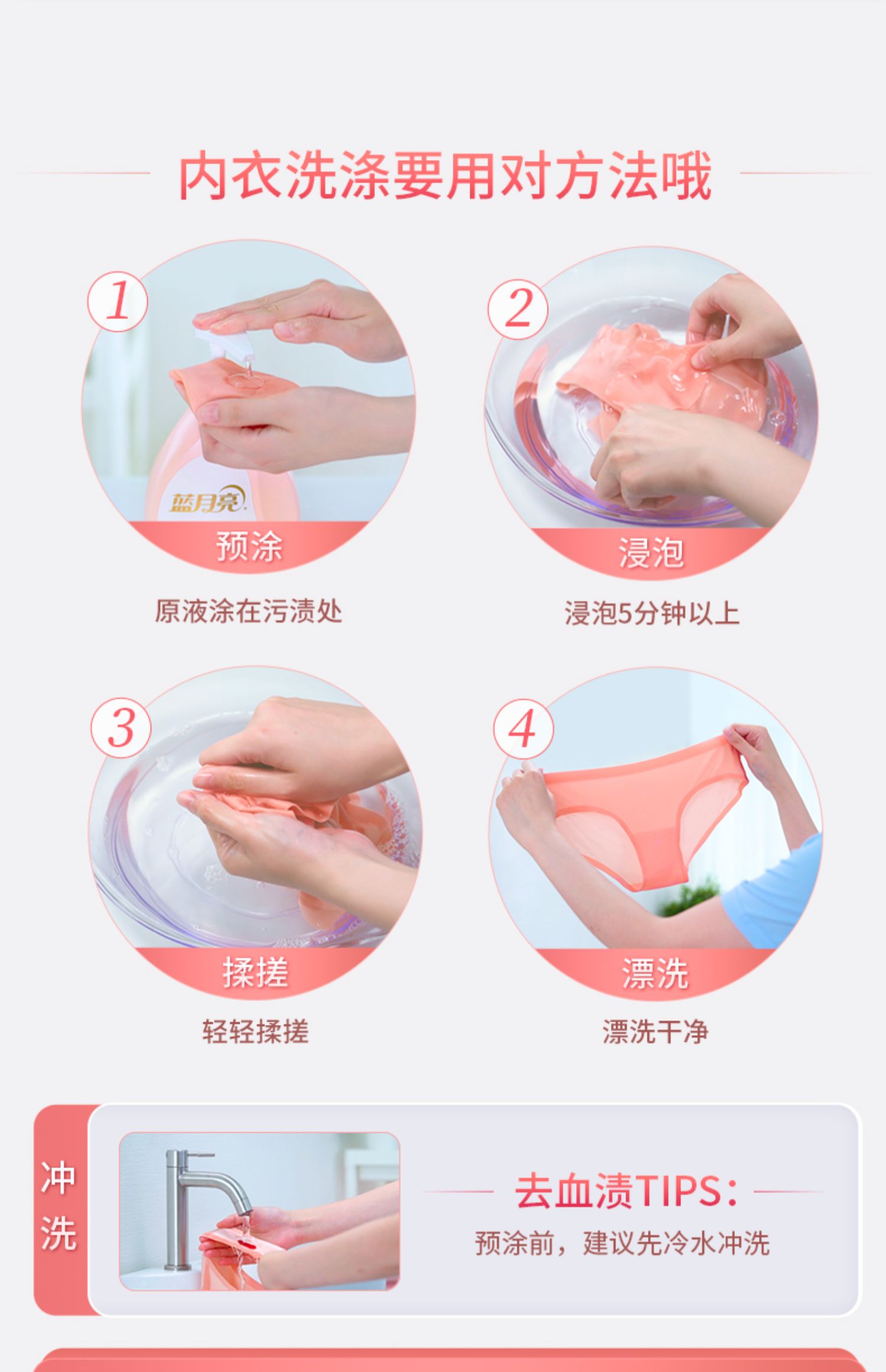 内衣裤难题,一瓶解决~蓝月亮内衣专用洗衣液!含洁净因子+活性酶, 深层去血渍、分泌物等污渍,温和无刺激,低泡易漂洗,高效除菌,贴身守护你的私处健康!