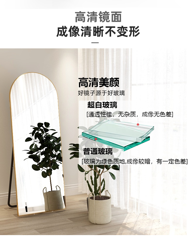 【妖妖新娘旗舰店】全身落地镜,镜面超清晰,轻奢风拉丝质感,加厚的边框,经久耐用不变形,一体成型全身镜,美观安全,女孩子的房间快来安排一个。
