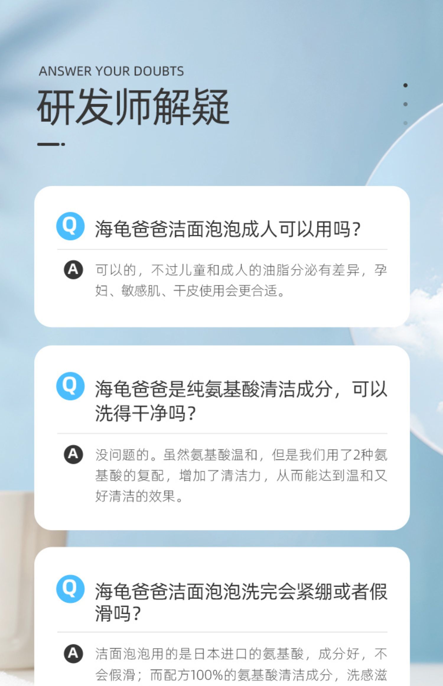 【海龟爸爸】泡沫洁面氨基酸,温和清洁泡泡,洁面一挤一擦,即净防晒,也能轻松洗净宝宝肌肤,当然越洗越嫩啦~敏感肌的大人也能用哦~