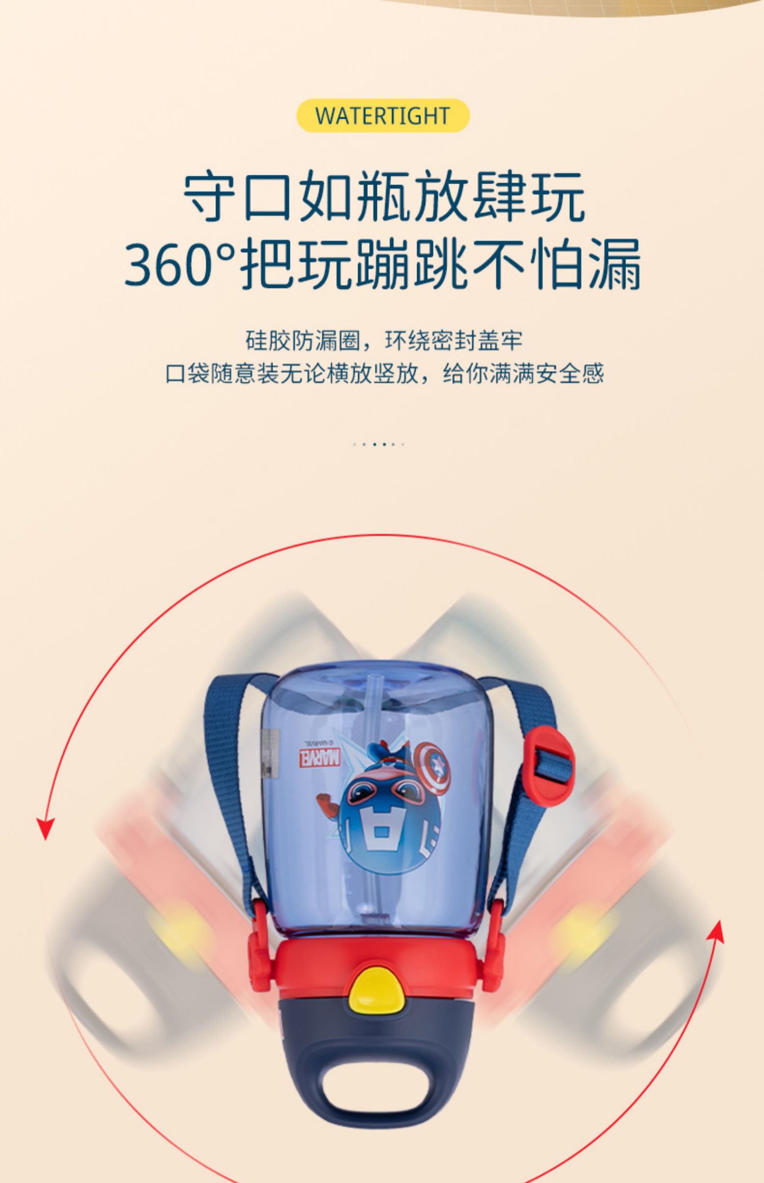 迪士尼吸管水杯杯身可爱印花设计,不论是男宝还是女宝都能挑选到一款心怡的颜色,杯套同款印花,背带绳可调节,外出游玩宝宝也能自己背着!【赠运费险】