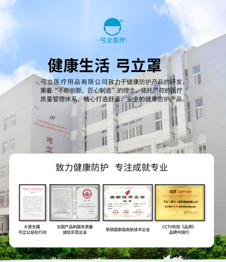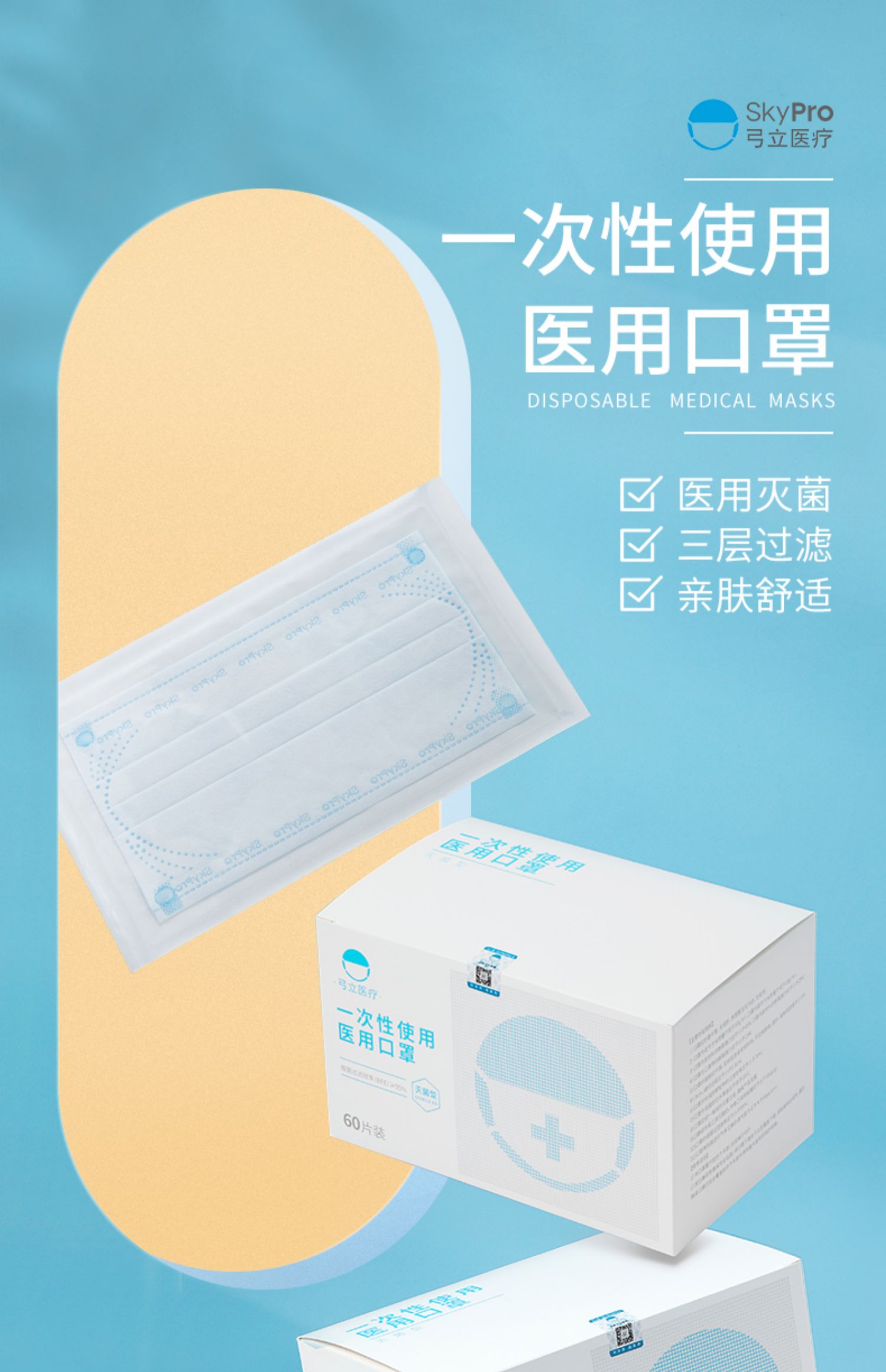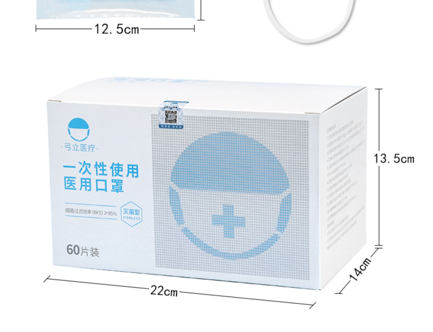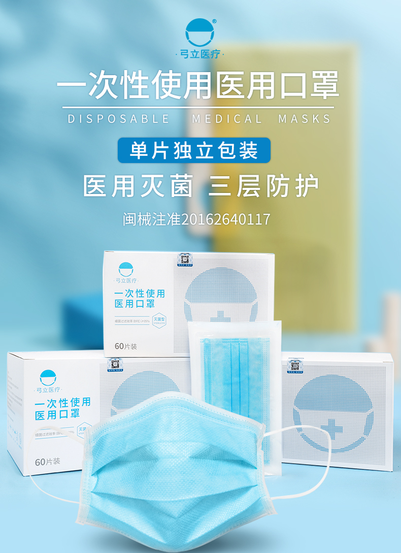 【50片独立包装】弓立医疗医用口罩,真正的械字号认证,三层设计,防尘防霾,透气舒适,过滤率达到95,药监局注册,买的放心!精选熔喷布,为您的健康层层守护!