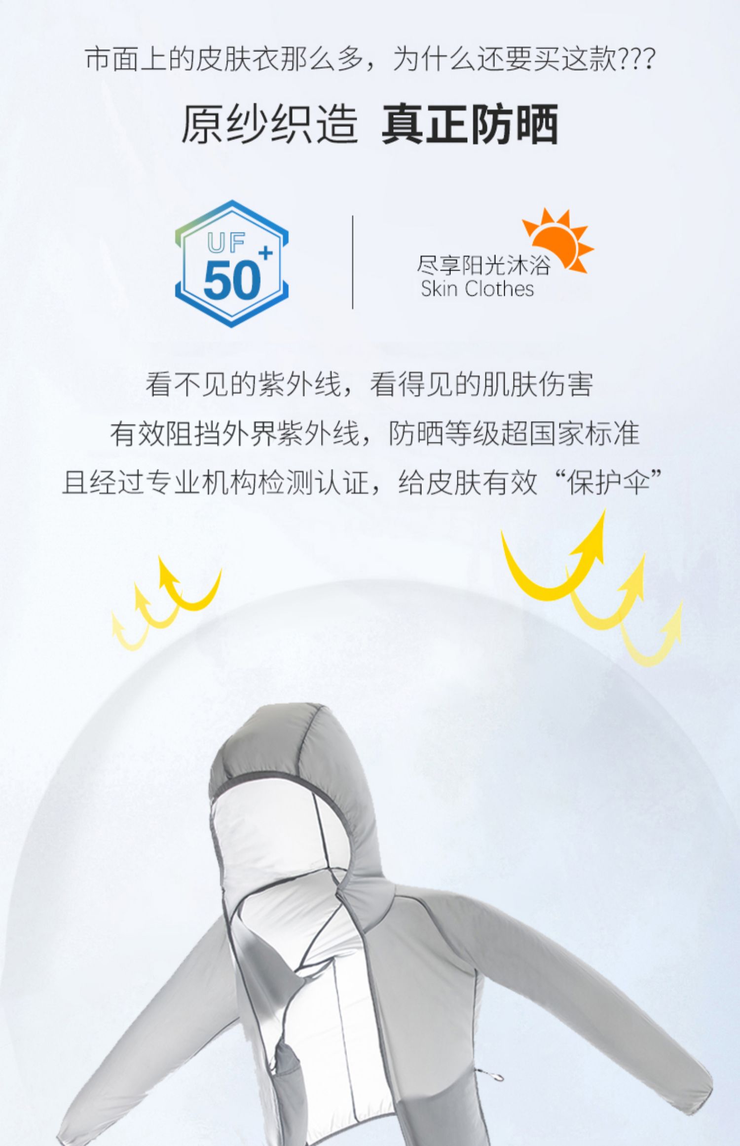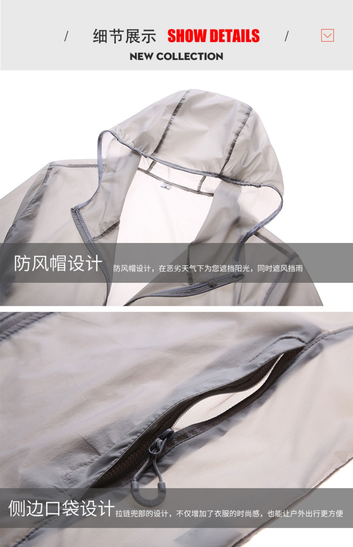 专业高品质防晒面料,防晒速干连帽,长久防晒无惧阳光,面料轻薄透气,细节做工,,穿着轻盈舒适无重感,清爽超透气,多颜色可选。