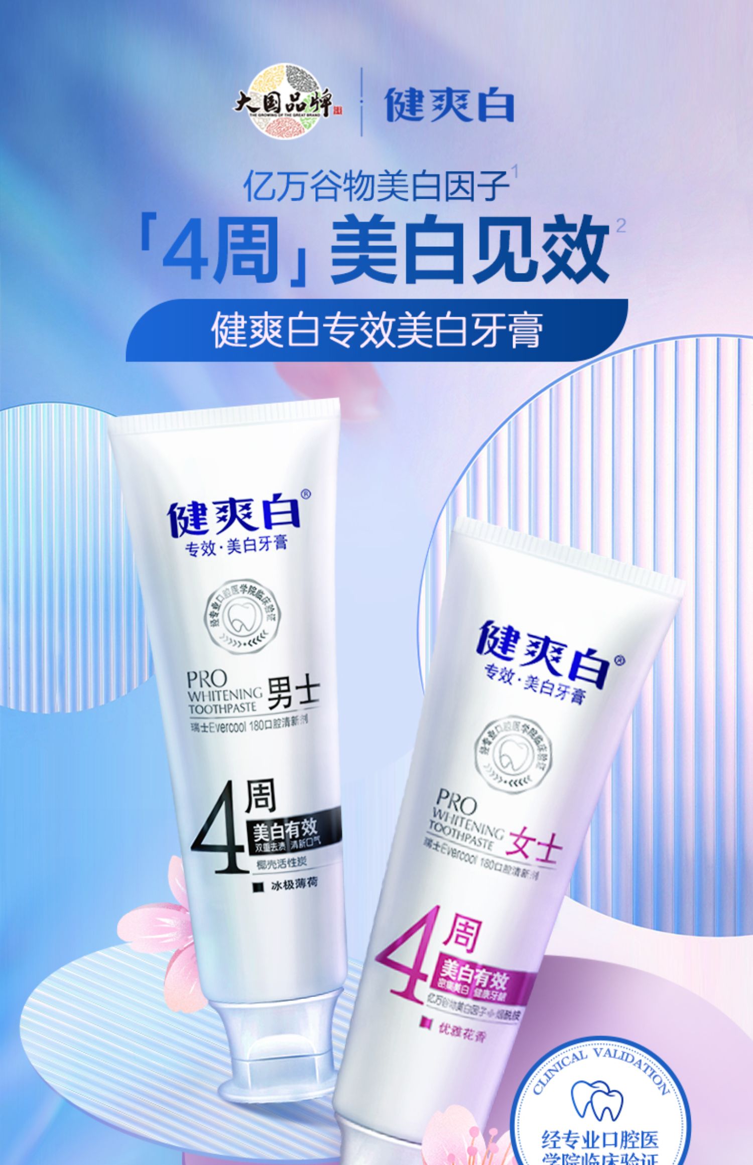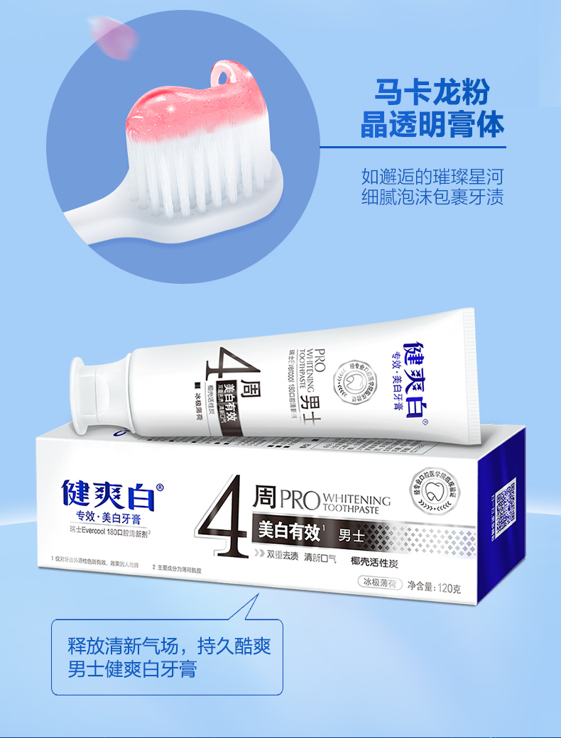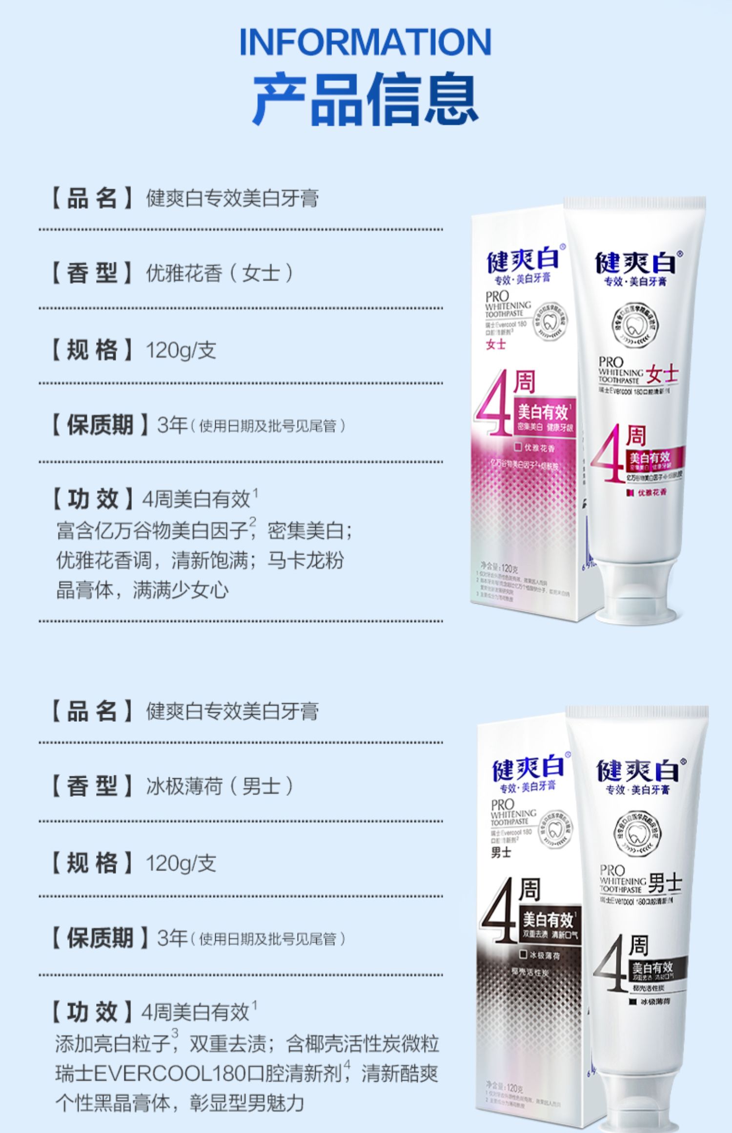 【4周美白有效】男女士牙膏120g*3+5倍清新牙膏90g*1,持久口气清新,健康牙龈,专效美白,洁白牙齿,蕴含瑞士专利清新因子,5倍清新口气,用了就会成为爱用品!