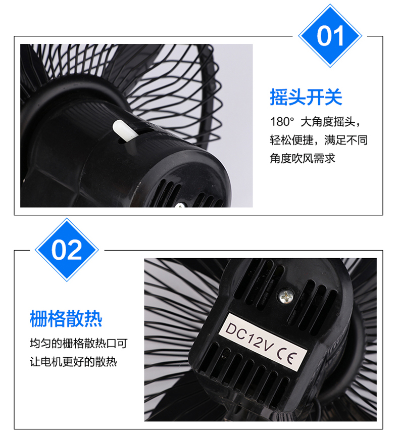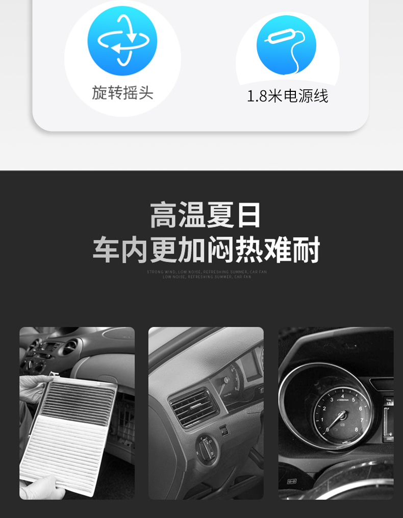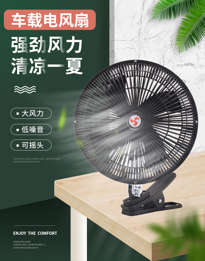 车载可摇头调速电风扇,强力大风力,货车长途司机必备