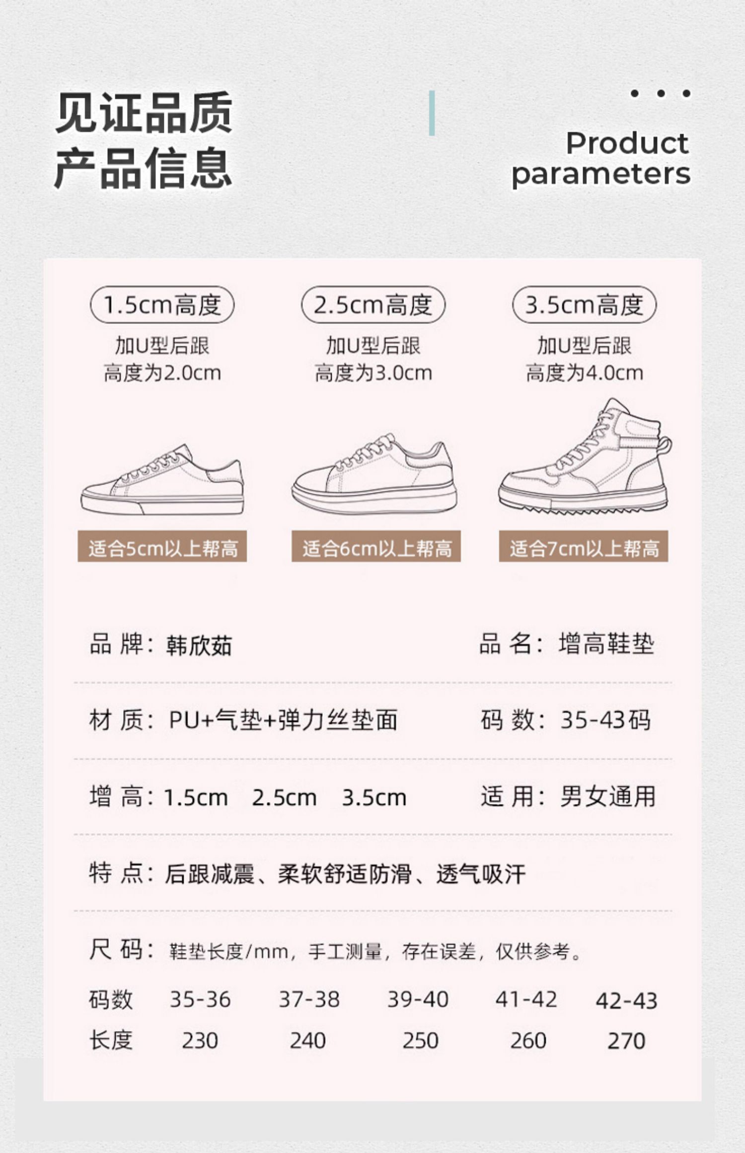 身高是个硬伤?想知道偷偷增高的秘密吗?选这款隐形鞋垫呀!关键舒适透气,不臭脚,不打滑,材质轻盈,软硬度适中~穿上它,垫出你的大长腿!