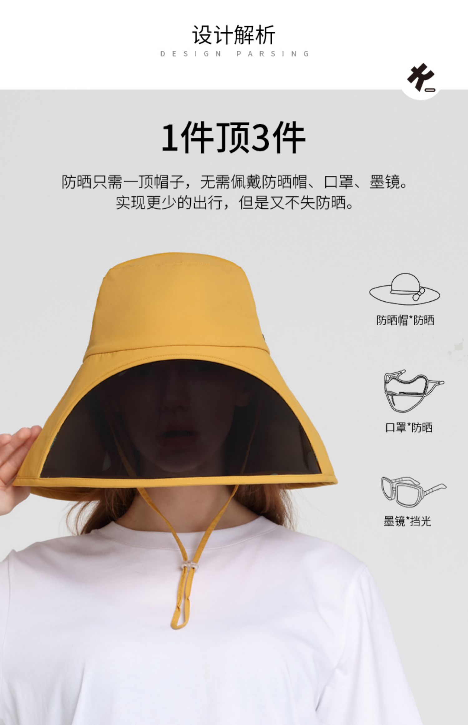 夏天大沿遮阳帽女,防晒太阳帽日系,百搭渔夫帽韩版帽子,帽檐细软丝,可随意定型,可折叠放包里,显脸小,透气面料不闷热。