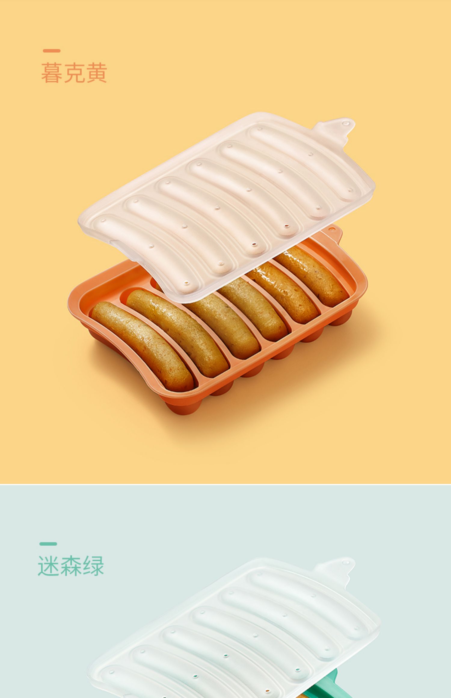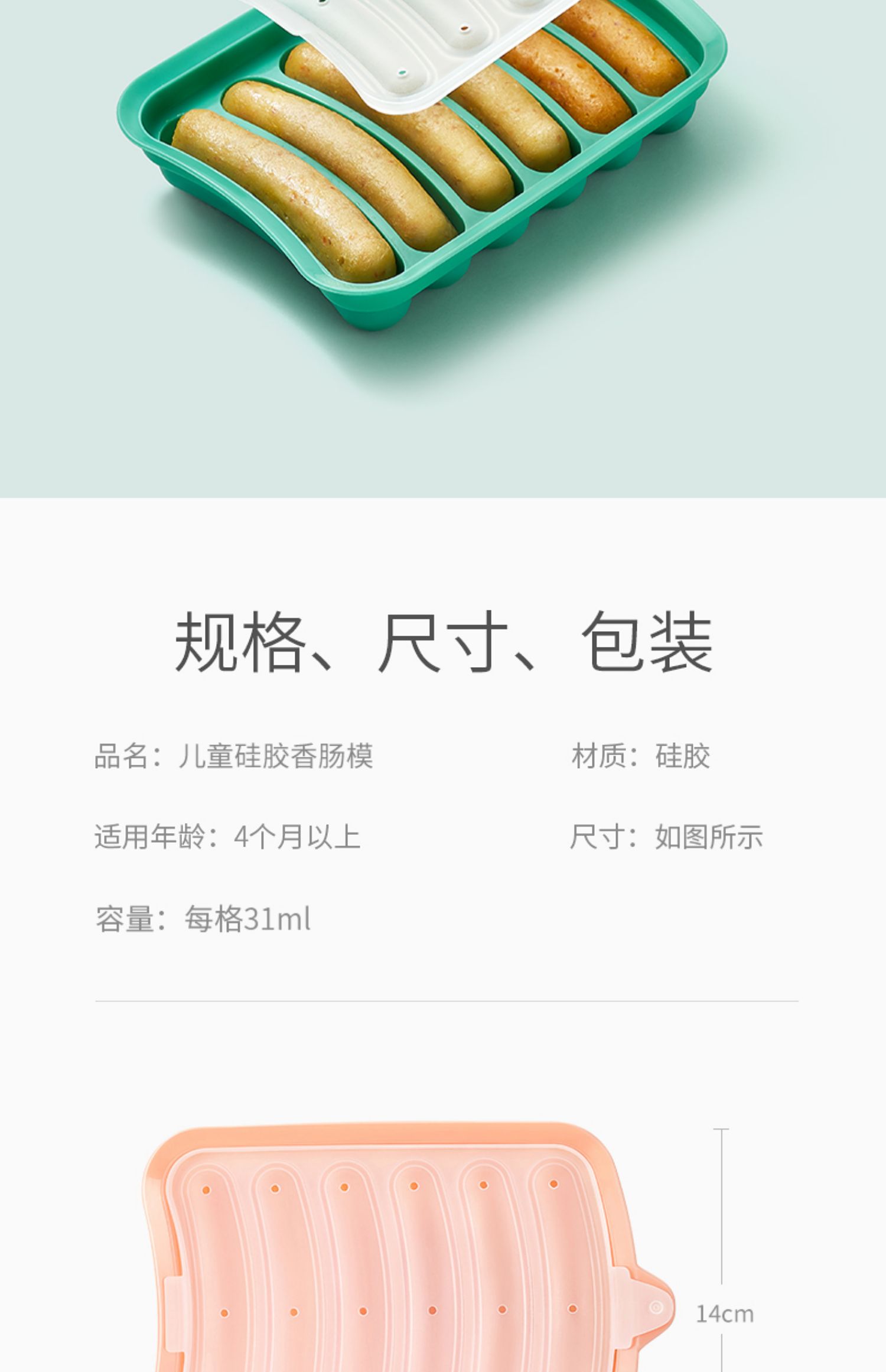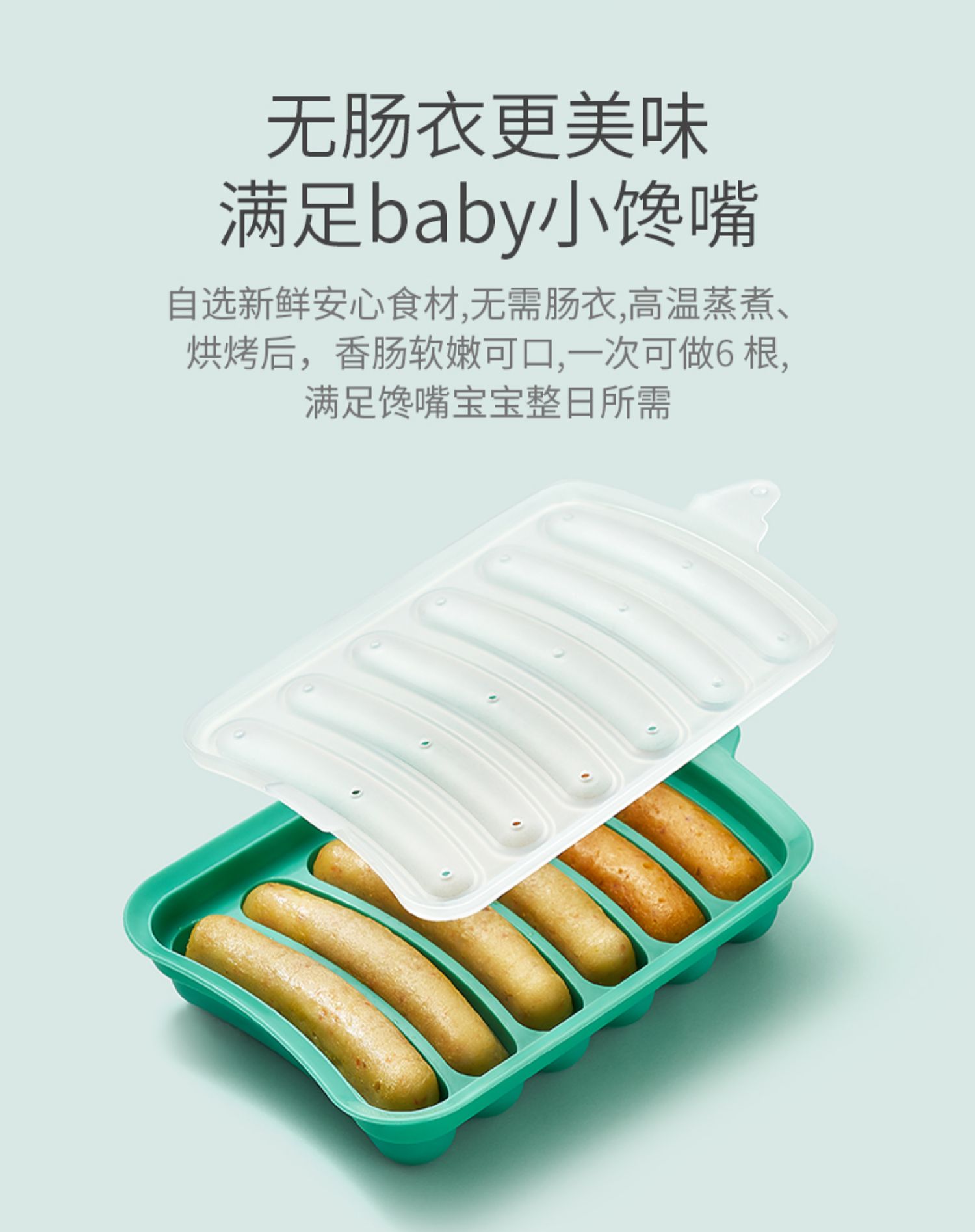 辅食DIY,轻松制作营养肠!采用食品极材质,安全无异味,高温无毒素析出,不含有害物质。可蒸可烤,多种使用,轻松脱模不沾,成型更方便,轻松解决妈妈的烦恼,宝宝健康吃的香!