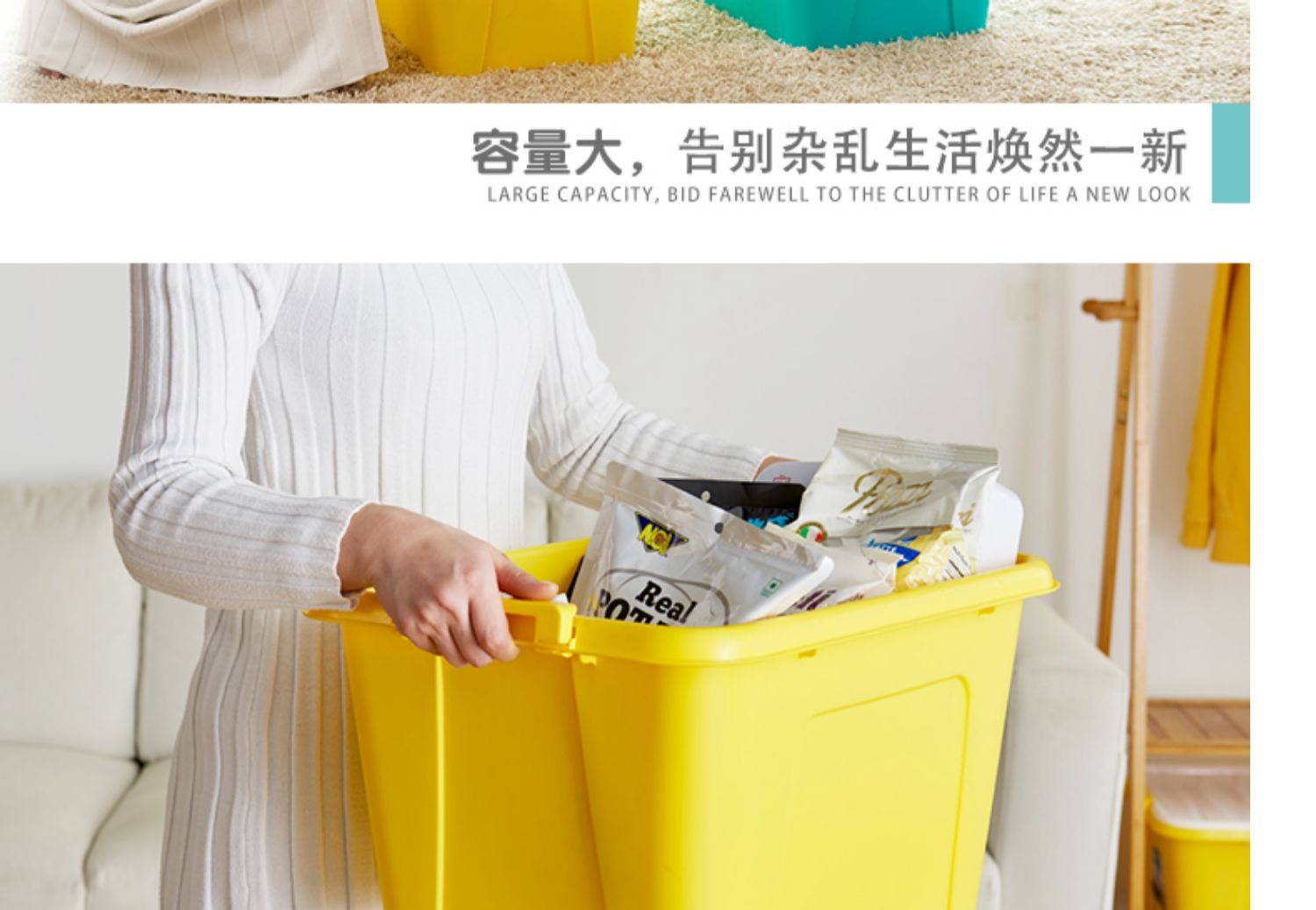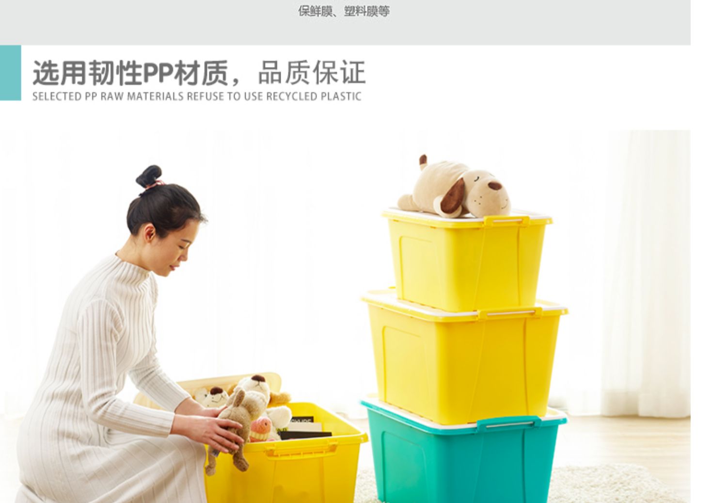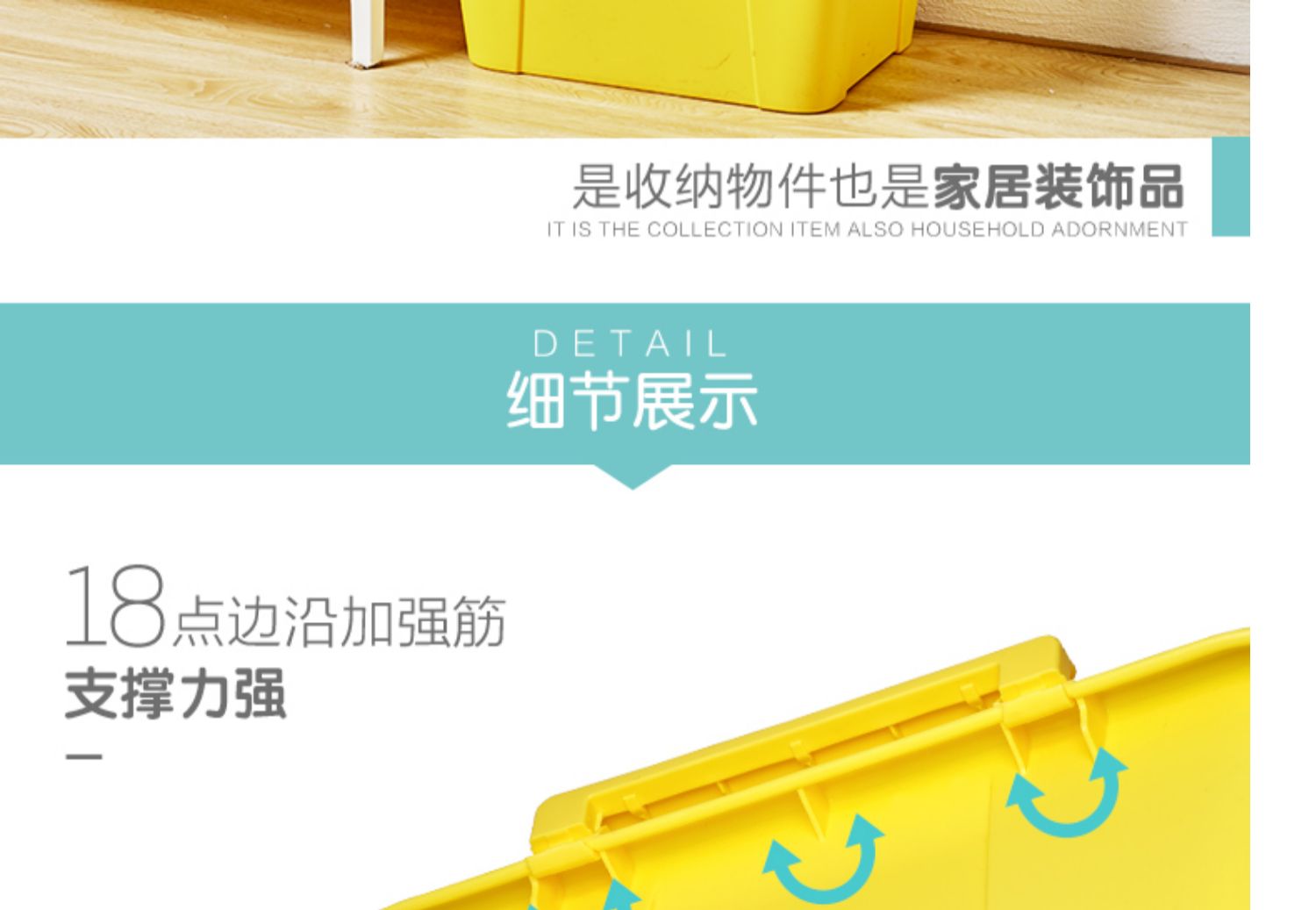 【叠津贴到手150.91元】选用韧性PP材质,容量大,告别杂乱生活焕然一新,宽边把手设计,好扣好提拿,底部有滚轮,方便移动,是收纳物件也是家居装饰品。