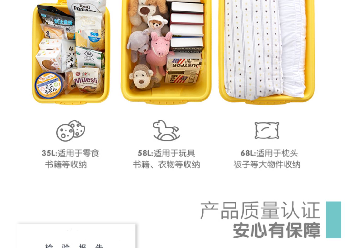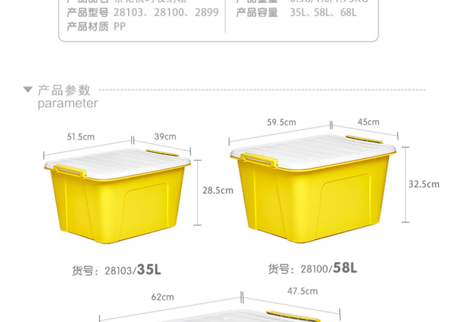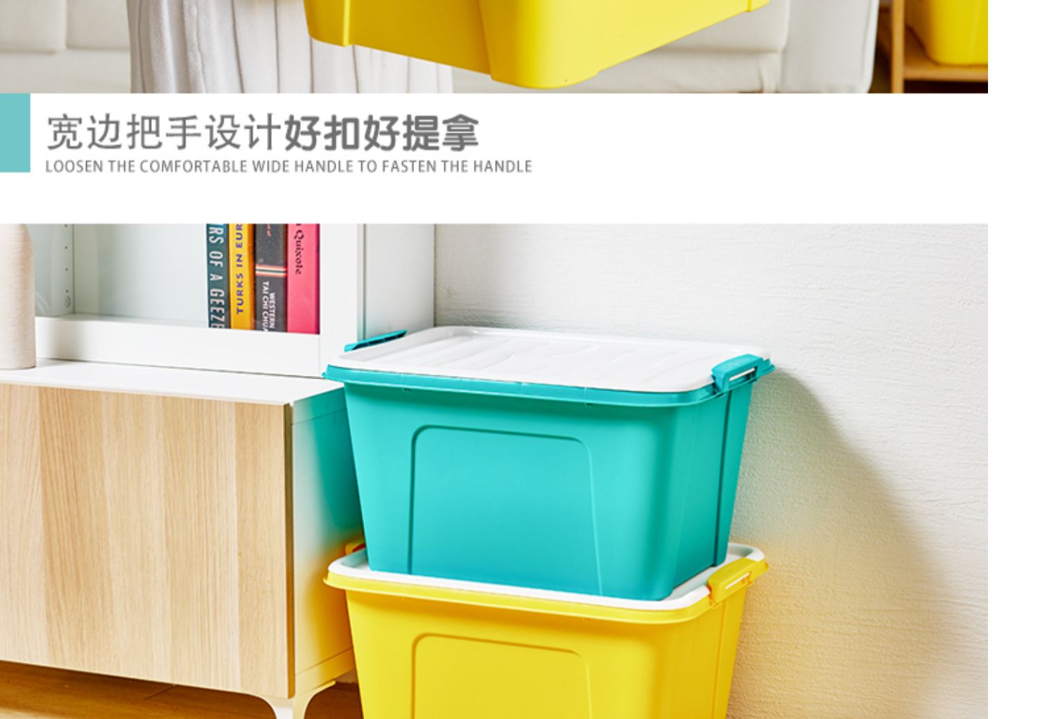 【叠津贴到手150.91元】选用韧性PP材质,容量大,告别杂乱生活焕然一新,宽边把手设计,好扣好提拿,底部有滚轮,方便移动,是收纳物件也是家居装饰品。