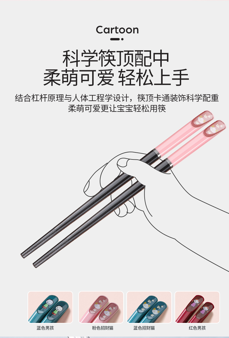 健康环保ABS材质,坚固耐用更安全,宝宝一段学习筷,拆除一个指环变2段学习筷,帮助了几十万儿童正确使用筷子,有了它,妈妈再也不担心宝宝不会使用筷子啦!