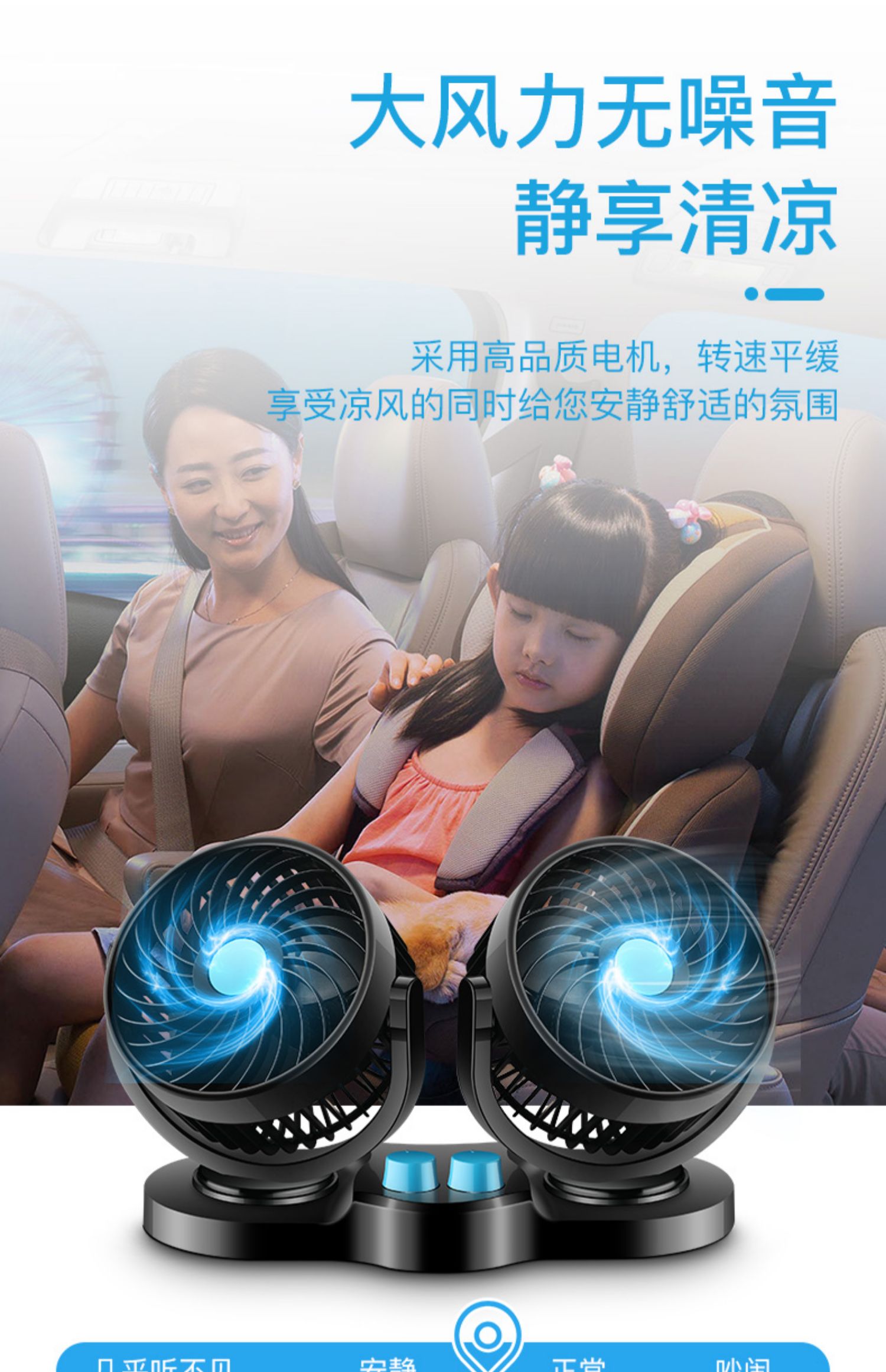 【车载双头风扇】降暑神器,节能省电,柔风轻音,经久耐用,强劲风力,航空级扇叶,加粗加密外框,加速气流循环,畅享舒适冰爽自然大风【免费包邮】
