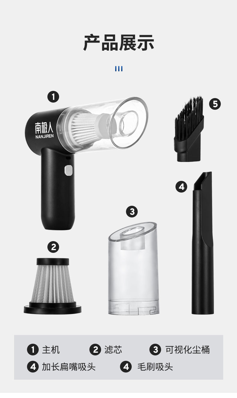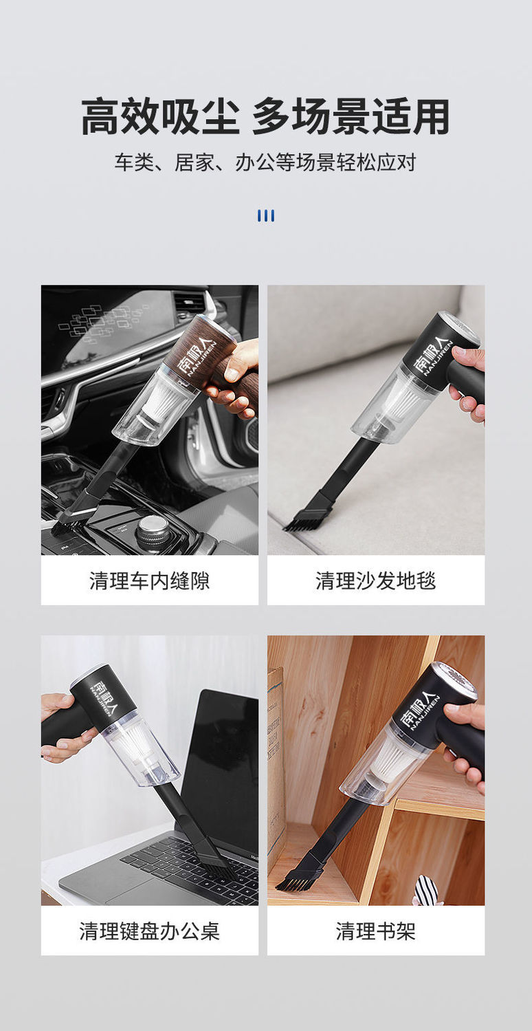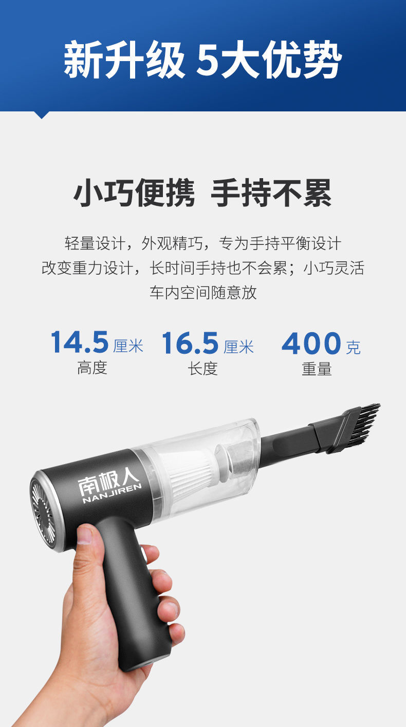 无线手持吸尘器,强劲吸力,酷炫升级,流体造型握感使用舒适,强劲吸力,垃圾不残留,多重过滤,持久大吸力,全面清洁,强劲吸附各种大小杂物,让爱车焕然一新,车家两用!(赠运费险)