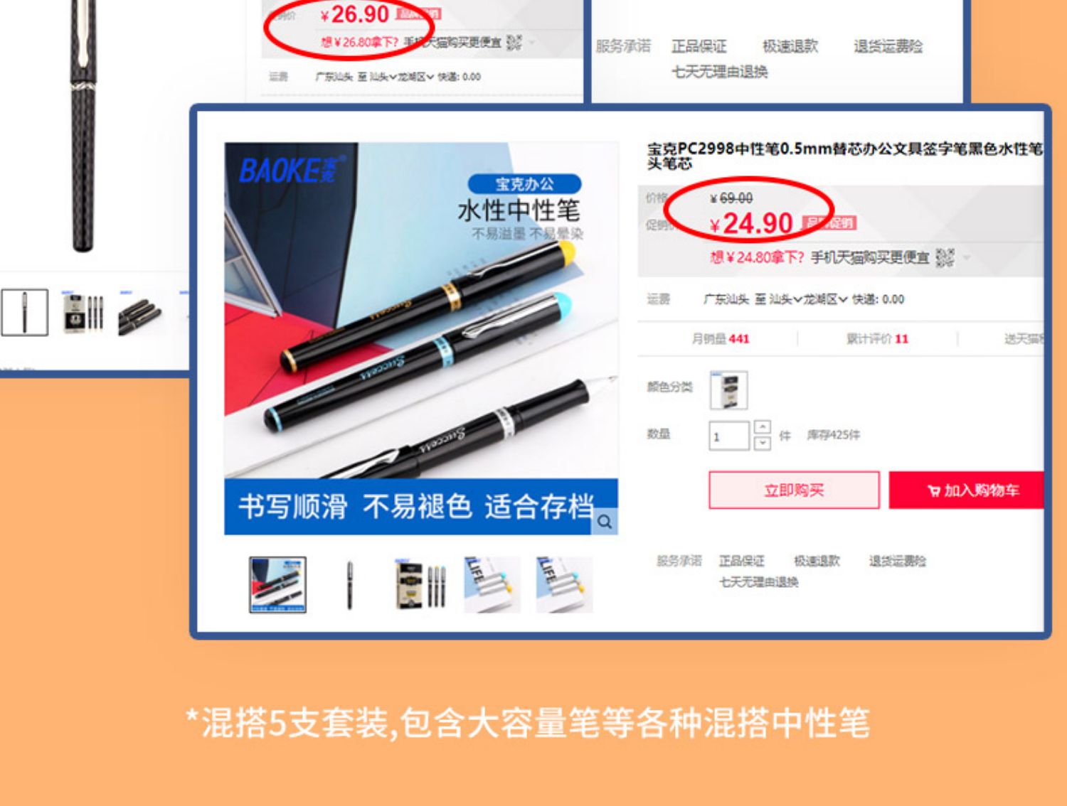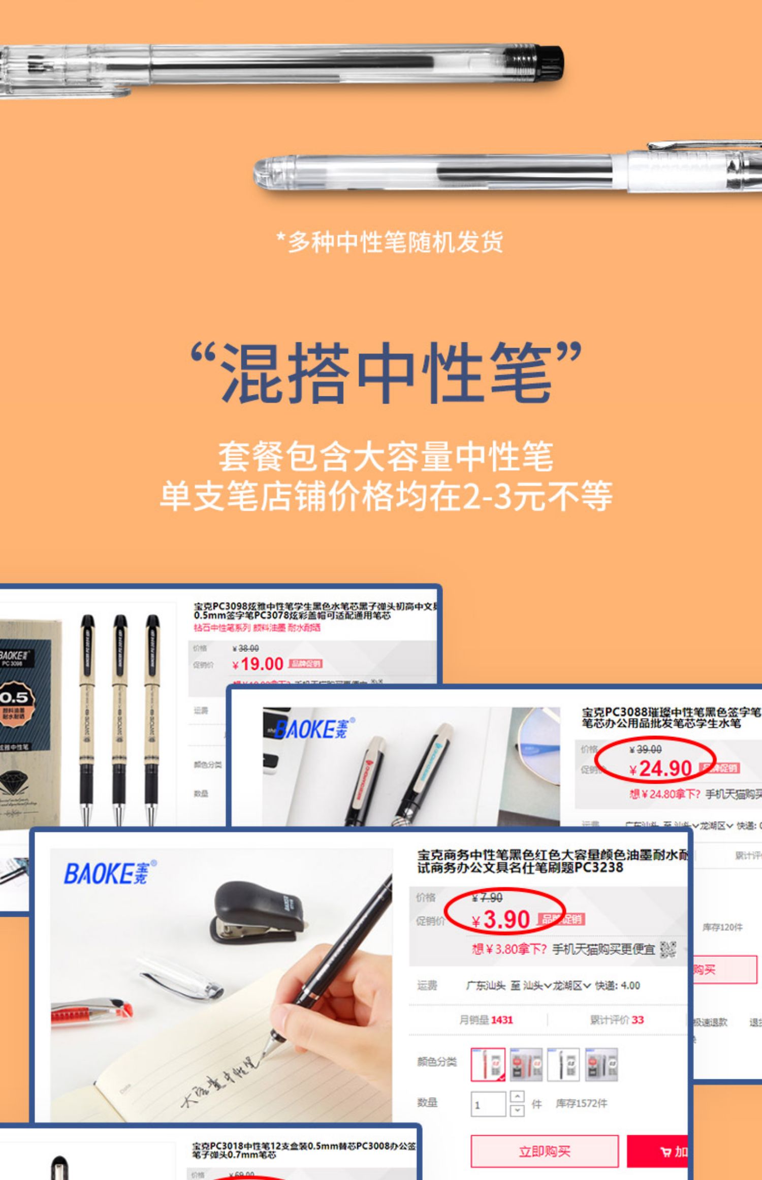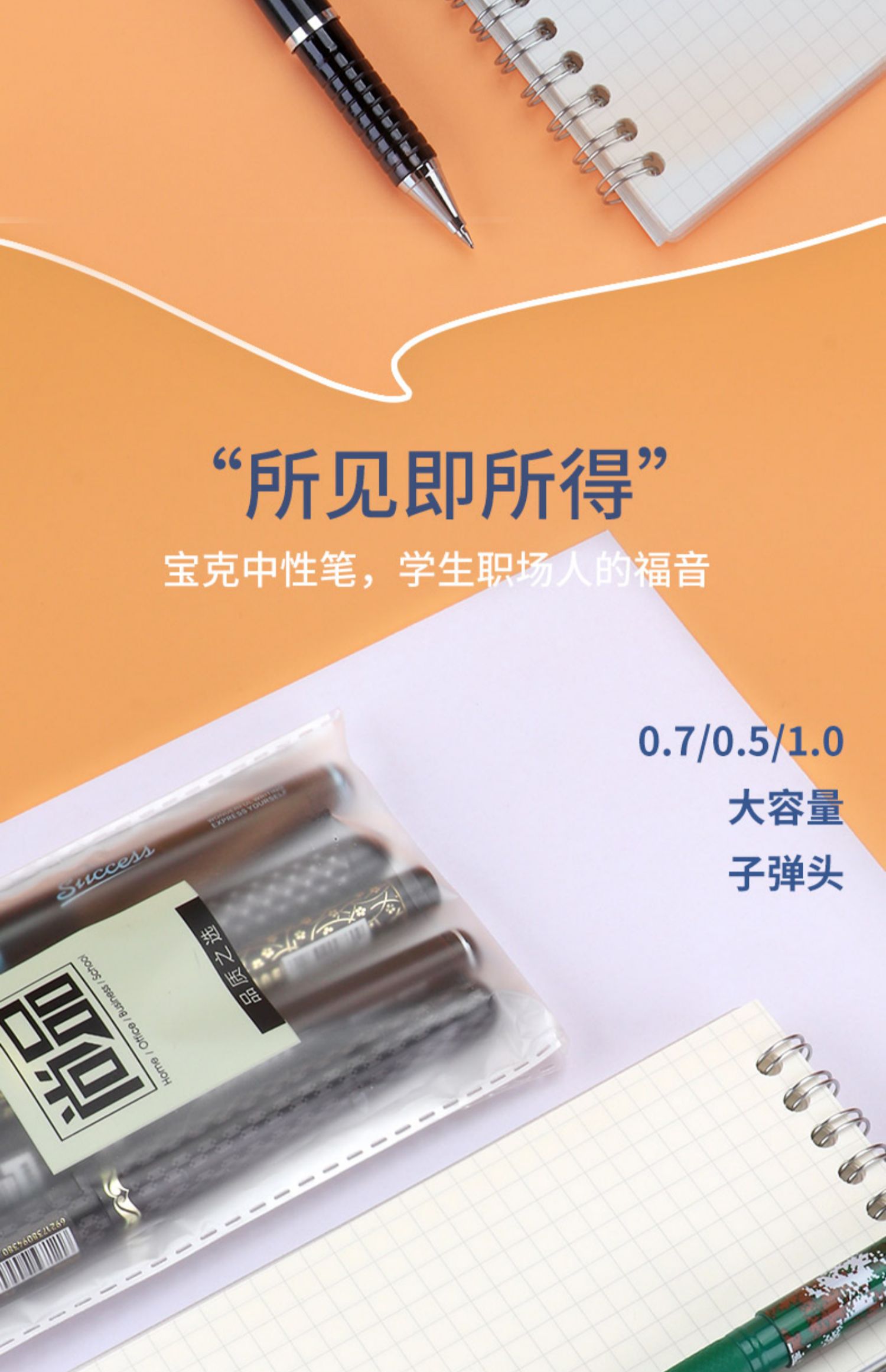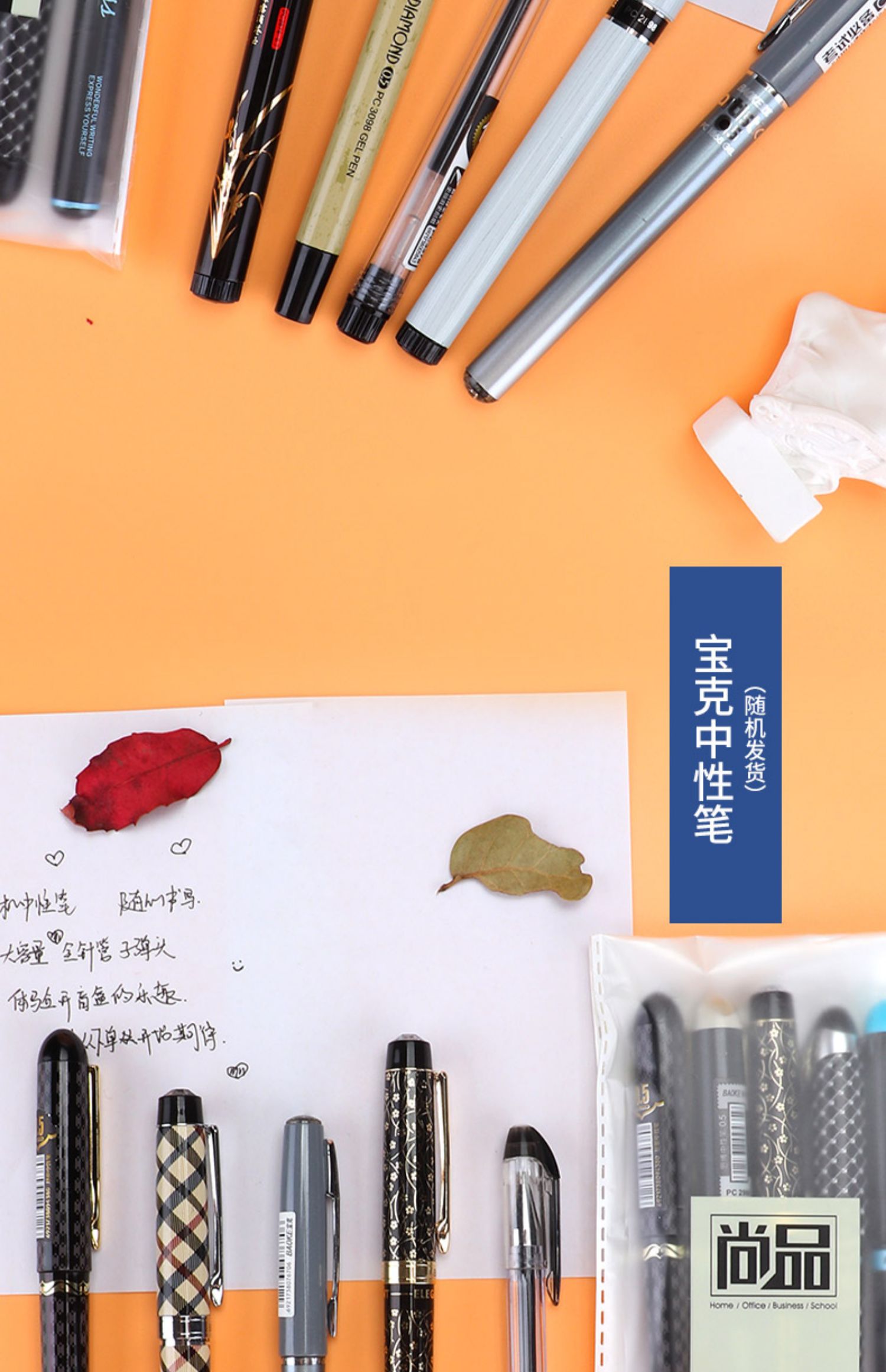 【签到红包2.1元,实际到手仅需1.8元】超值宝克中性笔,5支宝克笔,0.5mm钛钢笔头,子弹头水笔,黑色学生文具专用,碳素黑笔芯考试笔,专用速干全针管式大容量,办公签字笔!