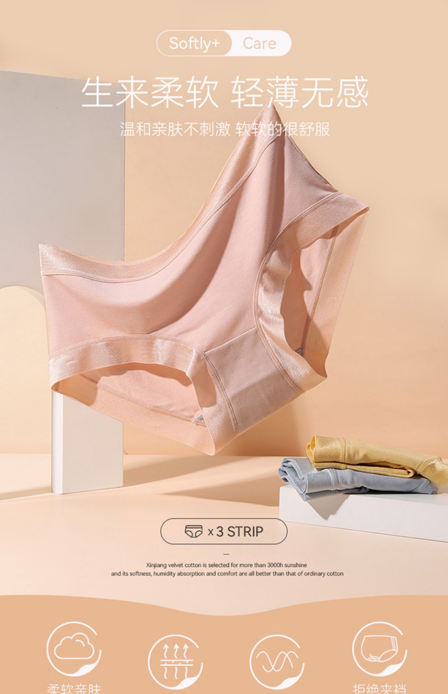 【线下要99元3条呢!】芬腾内裤女春夏秋纯色中腰提臀三角裤,女士纯棉裆莫代尔短裤头裤衩【芬腾官方】【商场同款】【正品直营】