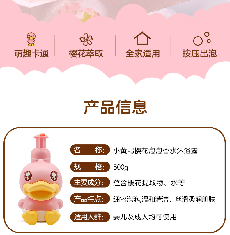 【1件6.5折】宝妈必囤!鳄鱼宝宝小黄鸭婴幼儿樱花泡泡沐浴500g/瓶沐浴露!甜甜的牛奶清香,宝宝用后就会爱上洗澡的沐浴露!泵头瓶口设计,使用更方便!