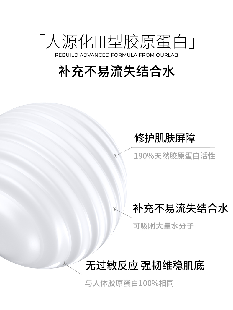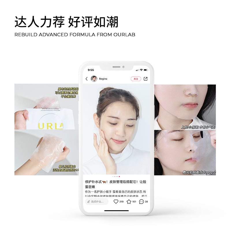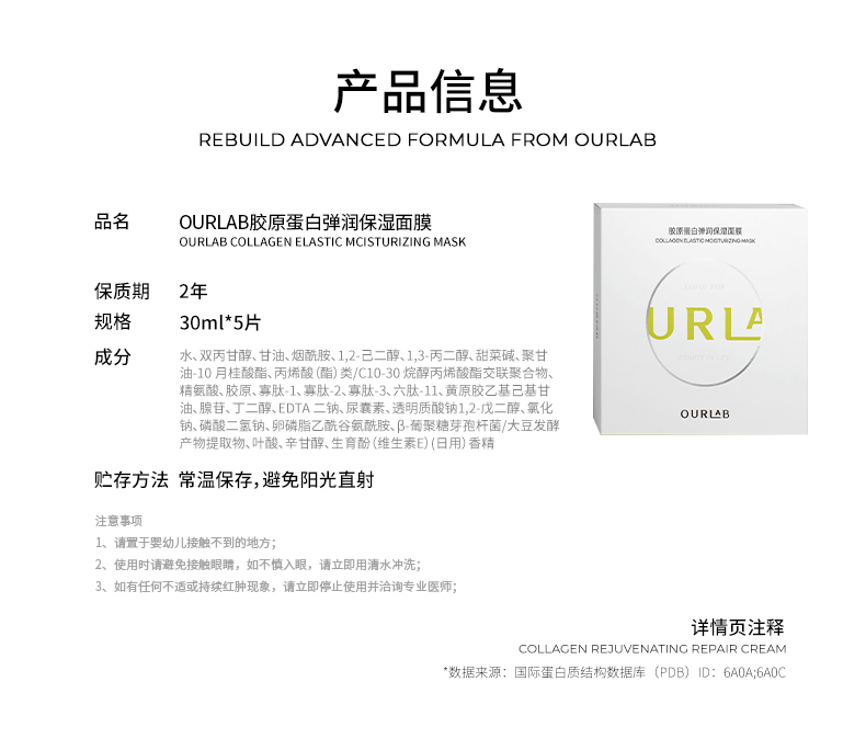 OURLAB人源化胶原蛋白弹润保湿面膜补水滋润肤修护女贴片式30ml*5。