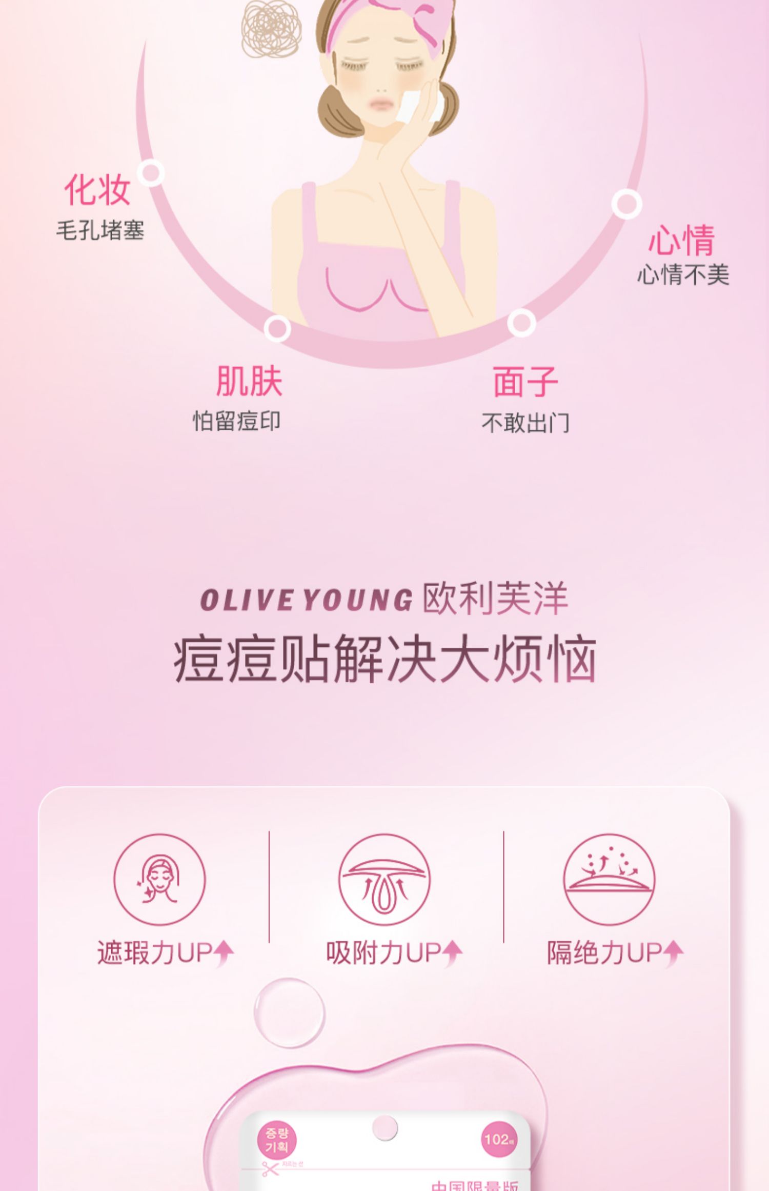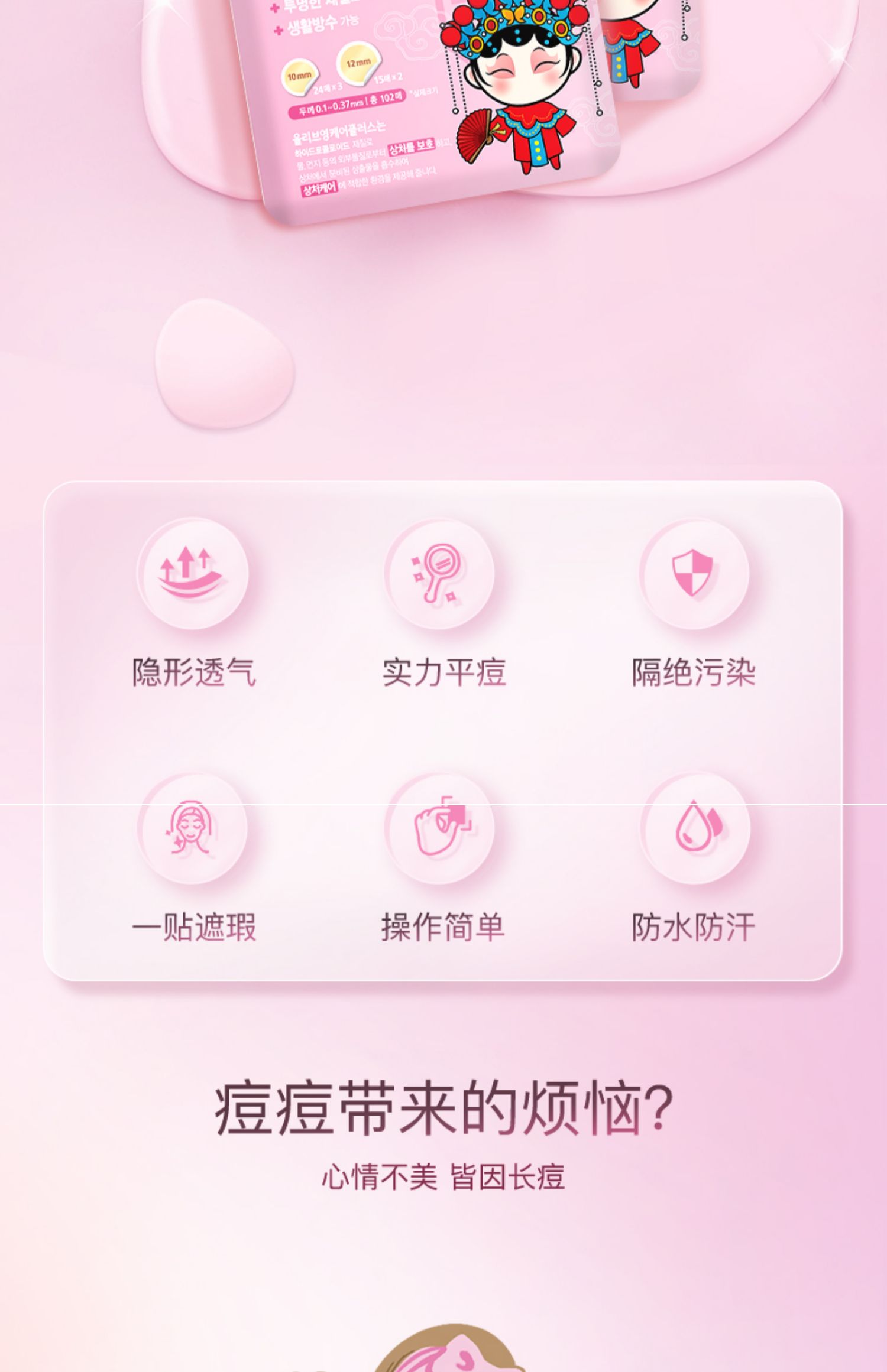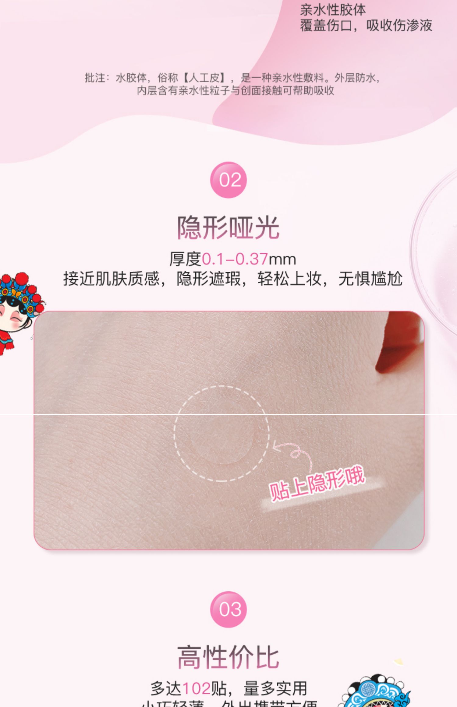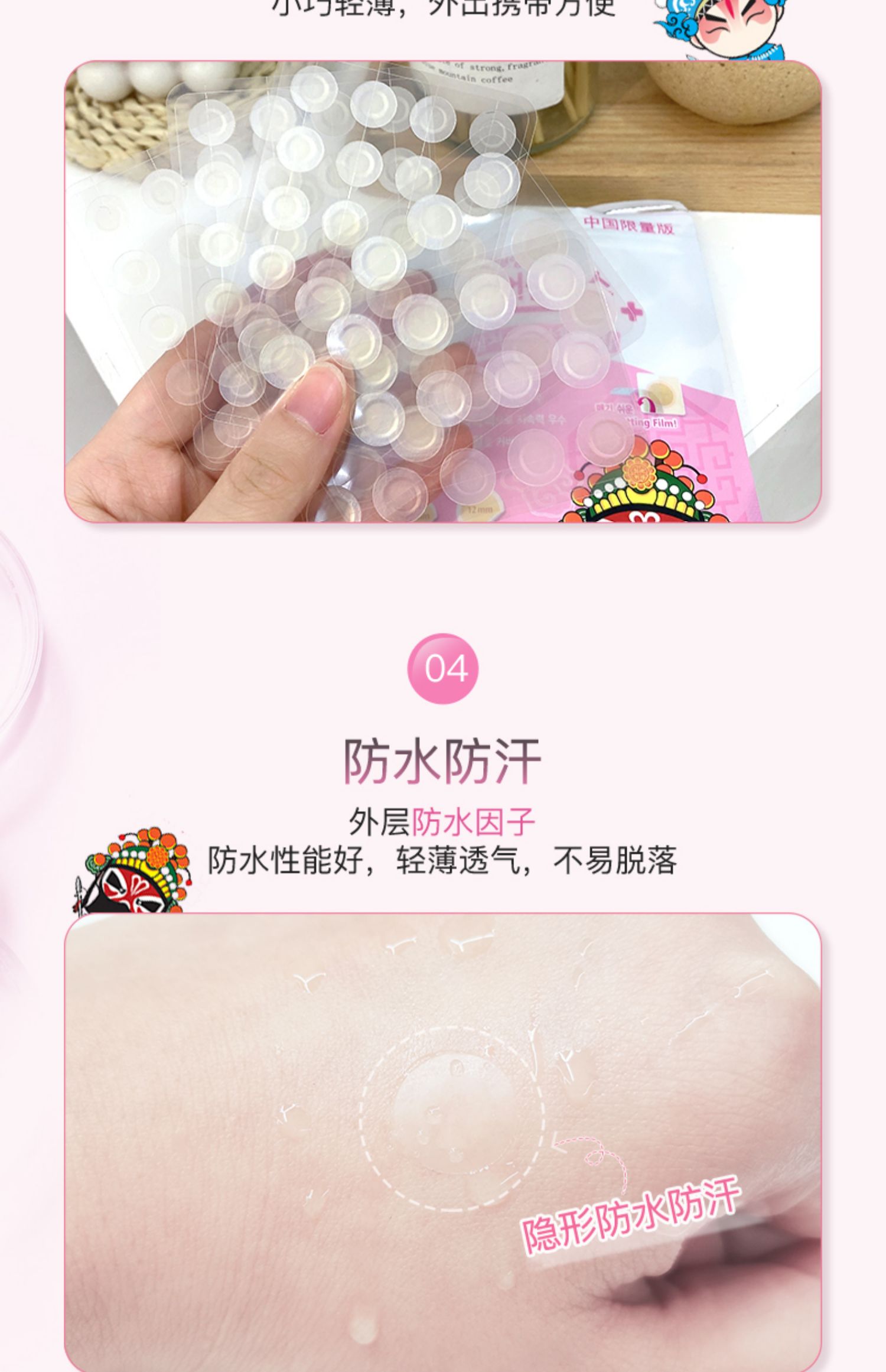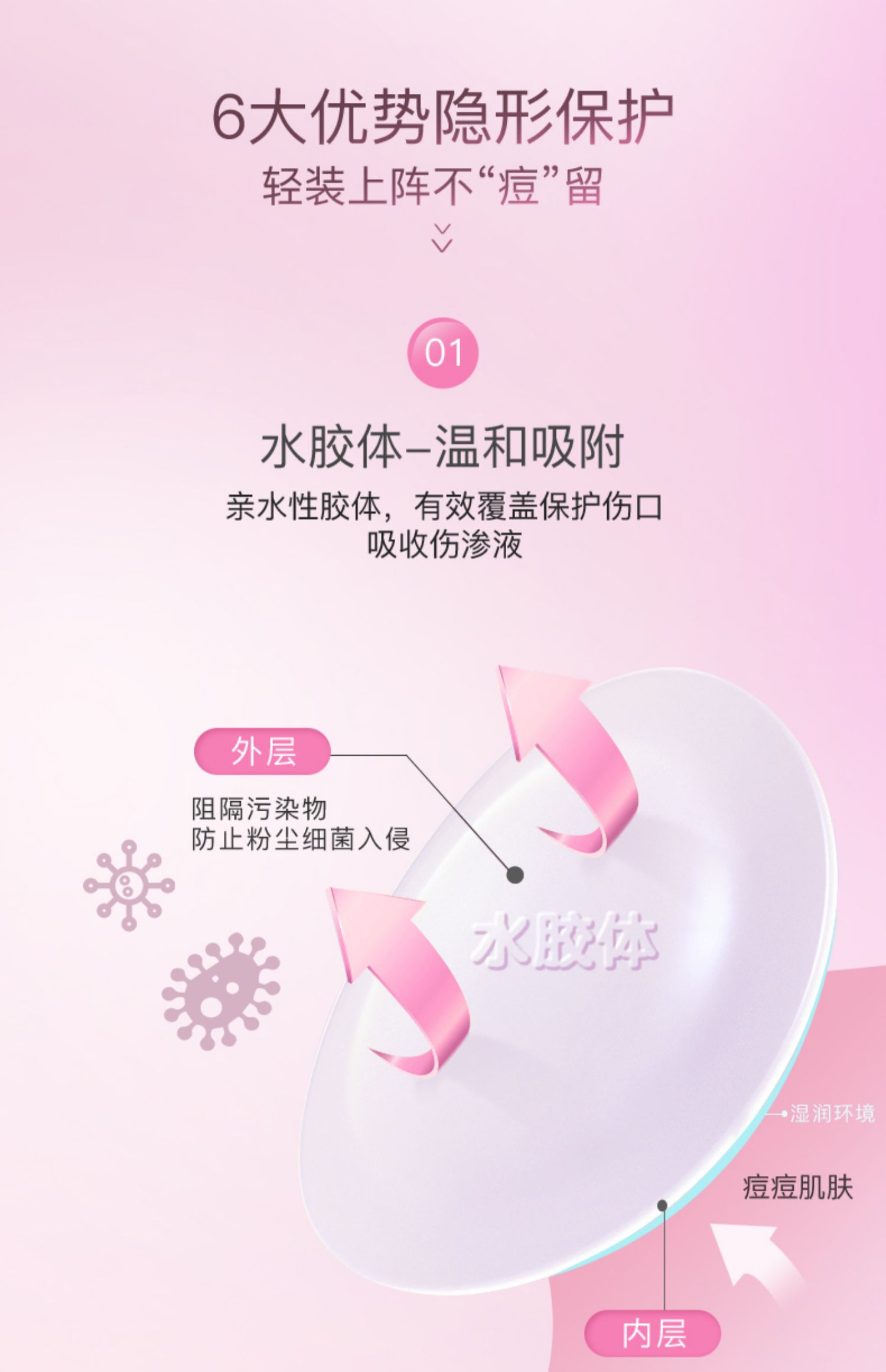 祛痘必备痘痘贴,水胶体温和吸附,有效覆盖保护伤口,接近皮肤质感,隐形遮瑕,上妆也不怕!防水防汗不易脱落~