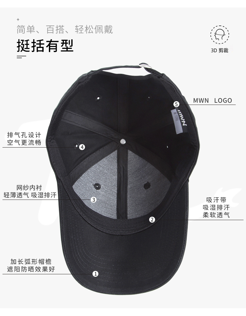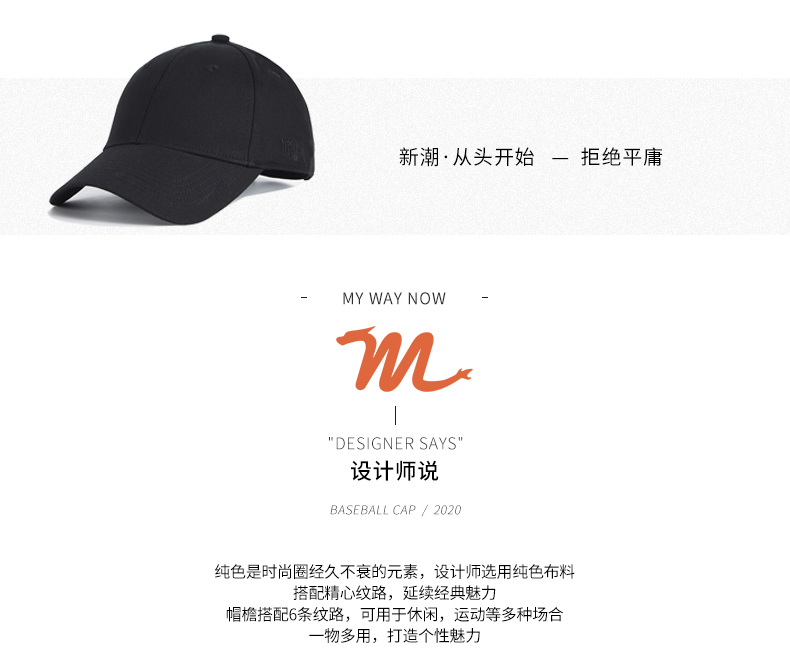 【退货运费险】潮流鸭舌帽,大小可调节,简约设计,时尚百搭,质地柔软,手感极好,吸汗透气,透气性好,不闷热~快来选购吧!