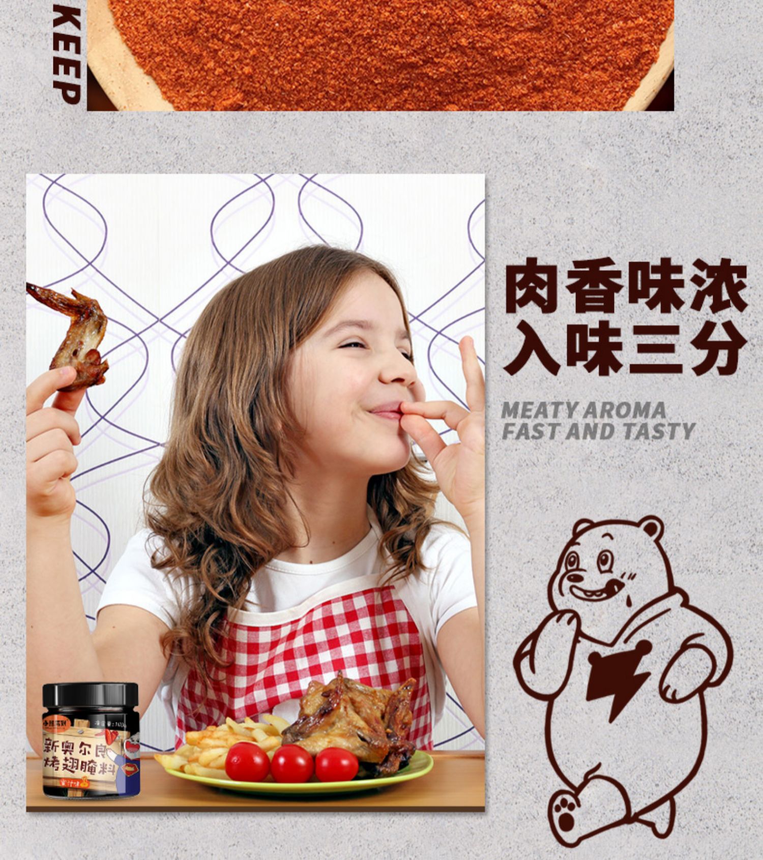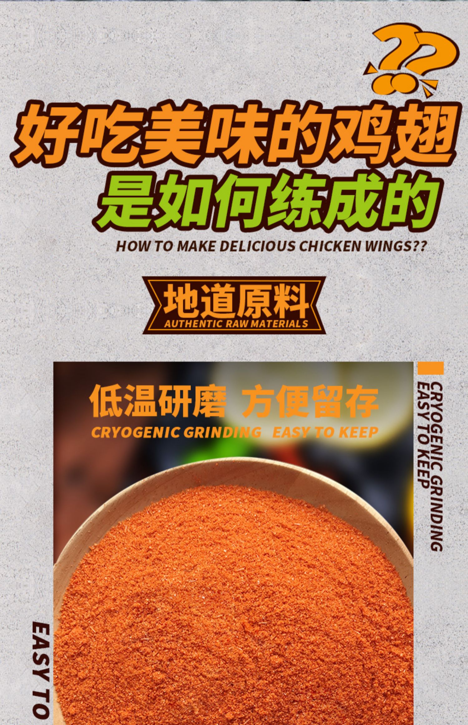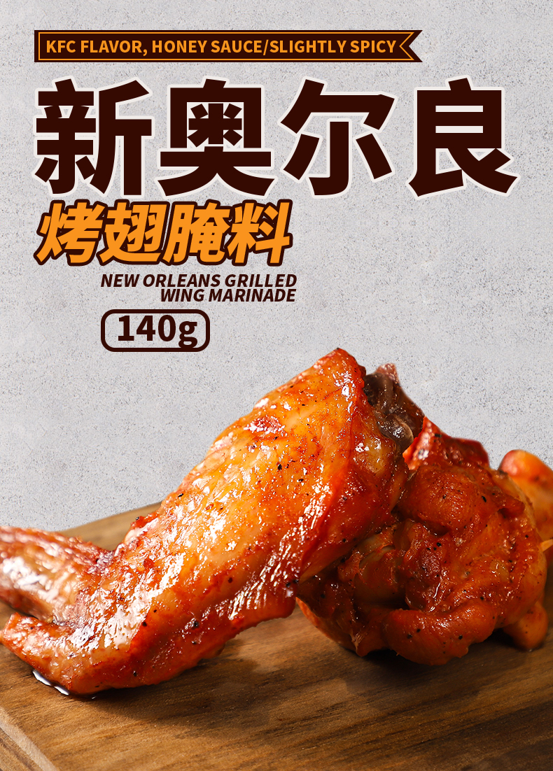 细粉kfc口感,黄金色泽,鲜美香口,爽爆味蕾!居家做大厨好调料,好吃到舔手指的奥尔良鸡翅,自己在家就能做