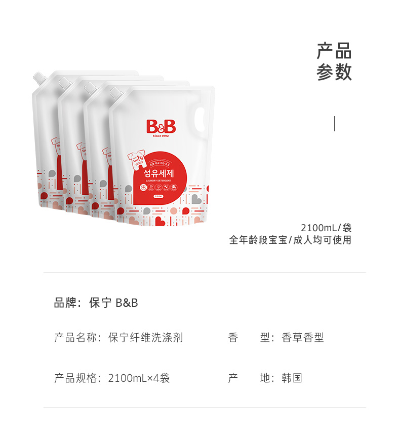 1件9折!宝宝洗衣液2100ml*4袋,天然草本衣物洗涤,韩国进口,草本无添加,温和不刺激,除菌除螨,天然安全,长时间抑菌,活性成分深度瓦解衣物上的顽固污渍,专为婴幼儿设计,赶紧囤!