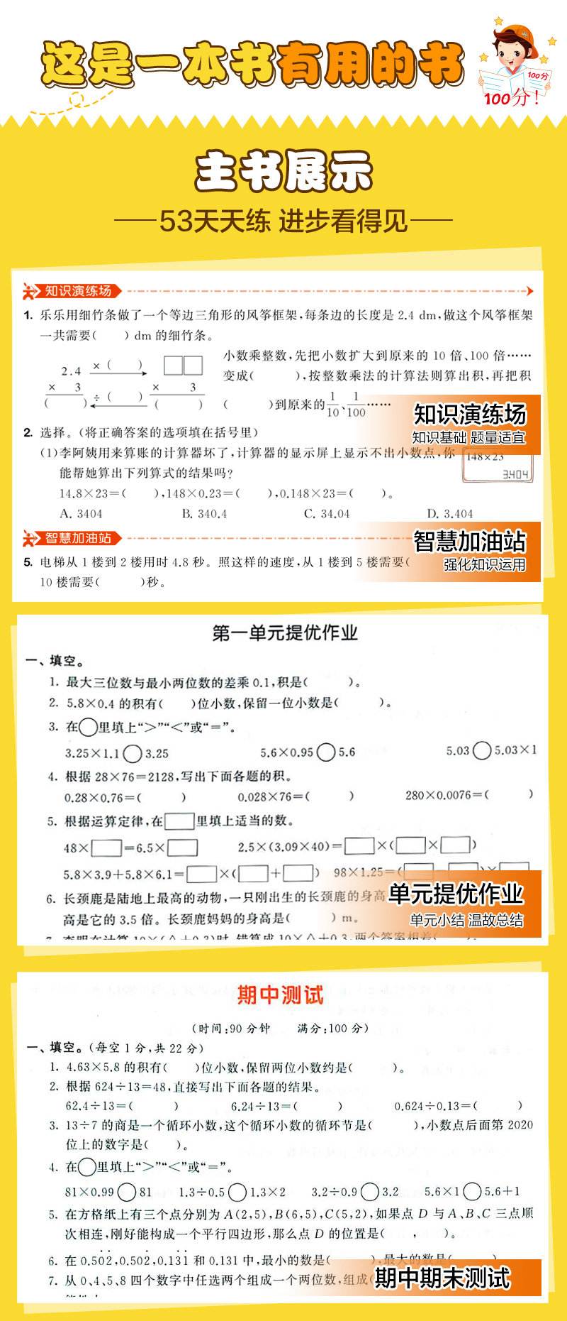 五年级【2022秋季新版现货】早买早优惠,语文+数学错题本,2022秋季新版小学五年级上下册53天天练,提前掌握知识技能,培养学生思考能力,增强应用意识,发展创新,让学习更轻松!